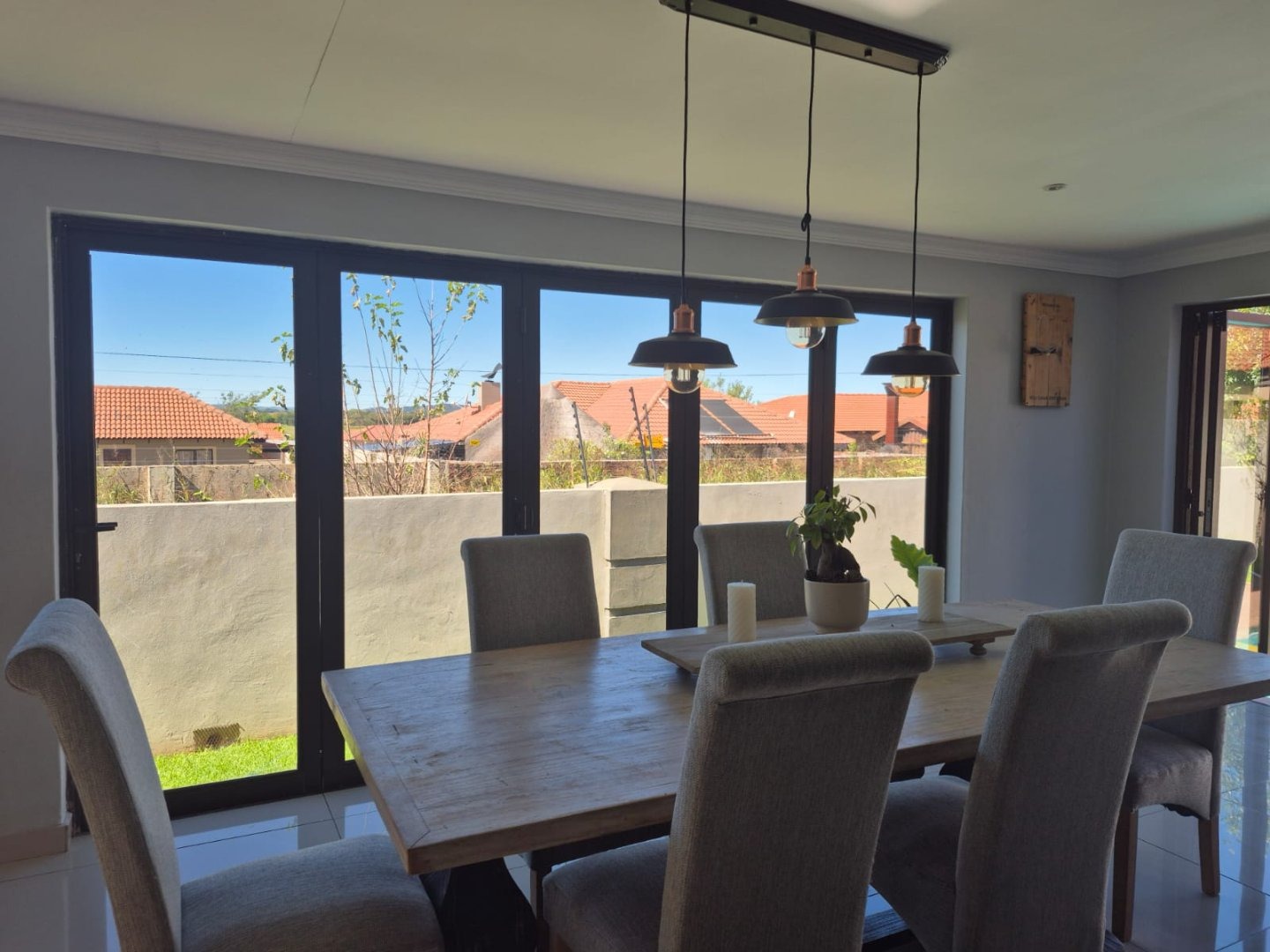 A double garage with built-in cupboards, a carport, and staff quarters add practical convenience without compromising elegance. The beautifully landscaped spaces and seamless indoor-outdoor flow make every moment at home a pleasure.