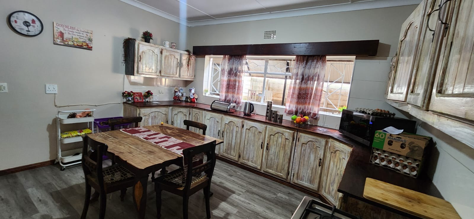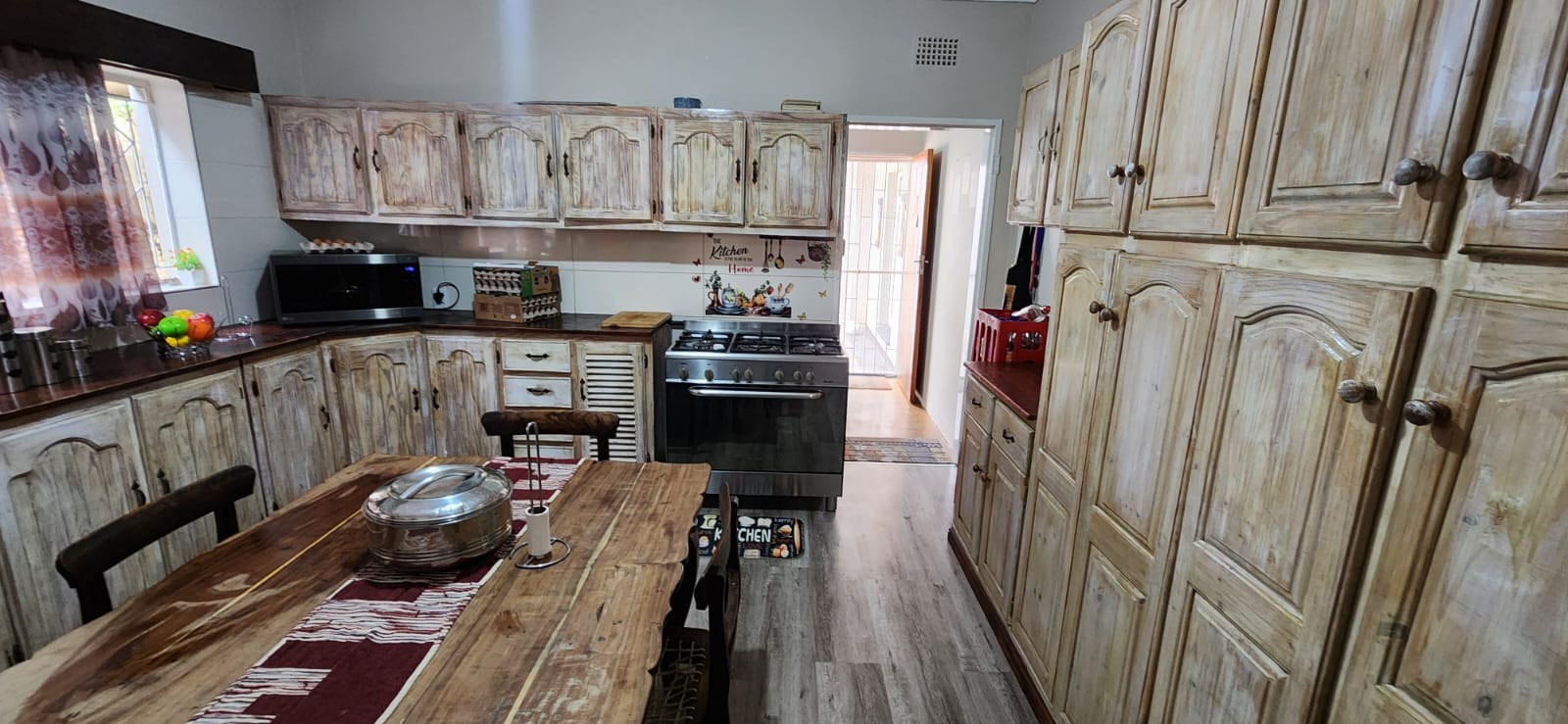 At the heart of the residence, the kitchen has been carefully arranged to combine functionality with everyday convenience. Ample workspace and practical layout ensure that meal preparation remains enjoyable and efficient, while a separate pantry offers additional storage and organisation, helping to maintain a neat and uncluttered environment. The kitchen serves as both a practical workspace and a central gathering point for family interaction. There is a separate scullery as well.