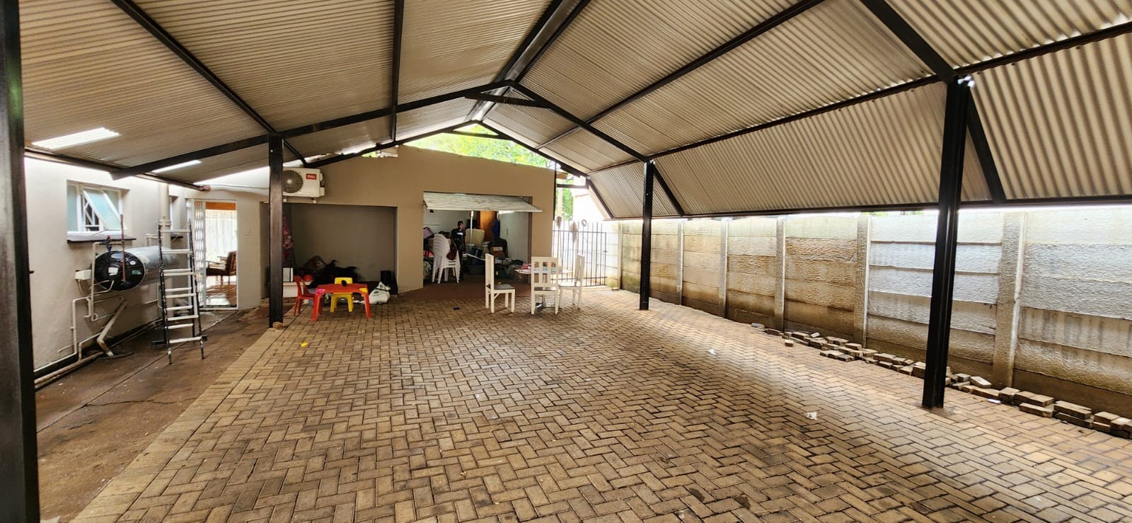 Practical considerations have also been carefully incorporated into the property’s design. The home offers six covered parking bays, ensuring ample space for vehicles while protecting them from the elements. There is a double garage as well. A secure electric access gate further enhances the sense of safety and convenience, allowing residents to enjoy peace of mind within their private surroundings. The property is fully fenced.