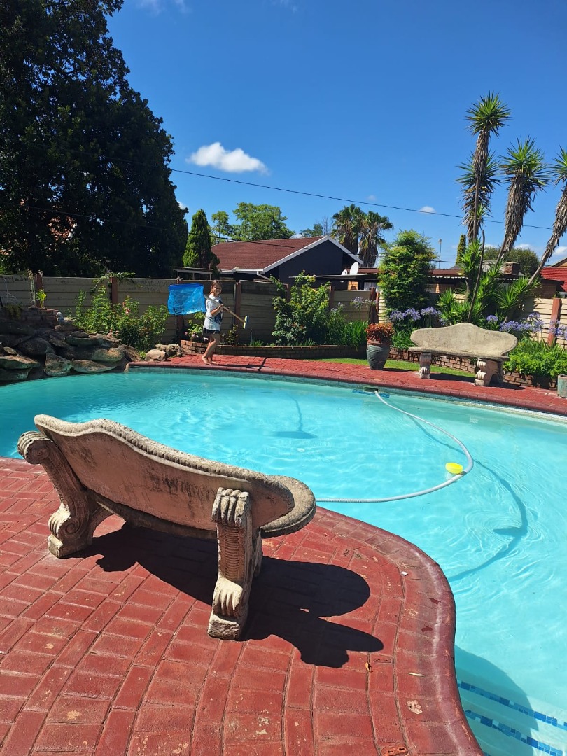 Discover this charming 3-bedroom, 2-bathroom family home nestled on a generous 1016 sqm erf in the peaceful Dassie Rand suburb of Potchefstroom. The property immediately impresses with its unique multi-toned brick facade, distinctive rounded architectural section, and a striking red tiled roof, creating excellent kerb appeal. A meticulously maintained green lawn, mature trees, and tall cacti enhance the welcoming exterior, complemented by a secure gated entrance and driveway. Inside, the residence offers a functional layout designed for comfortable living. It features three well-proportioned bedrooms, with one benefiting from an en-suite bathroom, alongside a second full bathroom. The home boasts two spacious lounges and a dedicated dining room, providing ample space for relaxation and entertaining. An additional study offers a quiet area for work or hobbies. The kitchen, while presenting a functional L-shaped dark countertop and light-colored cabinets, offers an open view to an adjacent living area, hinting at its potential for modern updates. Outdoor living is a highlight, with a large, private backyard featuring a covered swimming pool, perfect for enjoying the South African climate. The property includes a lapa with a built-in braai and a paved seating area under a pergola, ideal for entertaining guests. The expansive garden is well-maintained with an irrigation system and benefits from a borehole, ensuring lush greenery year-round. Parking is convenient with a single garage and three additional open parking spaces. Security is well-addressed with an alarm system, CCTV, an access gate, security gates, and burglar bars, providing peace of mind. The property also embraces sustainability with installed solar panels and a battery inverter, contributing to energy efficiency. Located in Dassie Rand, this home offers a tranquil country living experience within the vibrant city of Potchefstroom. Key Features: * 3 Bedrooms, 2 Bathrooms (1 En-suite) * 2 Lounges, 1 Dining Room, 1 Study * 1016 sqm Erf with Established Garden * Covered Swimming Pool, Lapa & Built-in Braai * Single Garage & 3 Open Parking Spaces * Solar Panels & Battery Inverter * Borehole & Irrigation System * Alarm System, CCTV, Security Gates & Burglar Bars