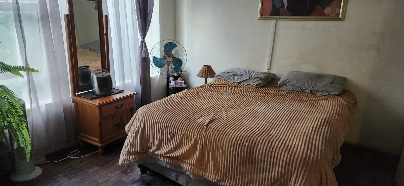 The main residence is a well-appointed double-storey home comprising three spacious bedrooms and two bathrooms. The ground floor features a functional kitchen and an open-plan living and dining area, creating a welcoming space for everyday living. Upstairs, an additional living room provides the perfect setting for entertaining guests or enjoying relaxed family gatherings. Outdoors, the home is complemented by a well-maintained garden and a double garage.