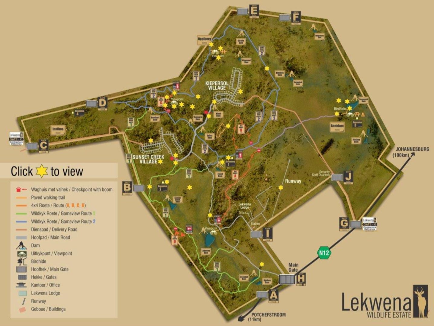 Lekwena Wildlife Estate, spanning just over 3000 hectares on the outskirts of Potchefstroom, combines bushveld, savannah, rocky outcrops, and wetlands to create a diverse and thriving habitat. Here, you can embrace a tranquil lifestyle with exceptional bushveld vistas and the beauty of the wild right at your doorstep.