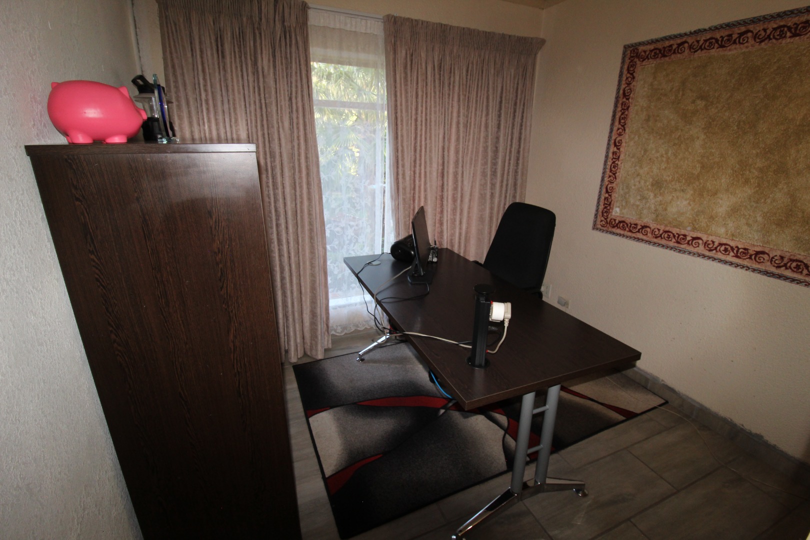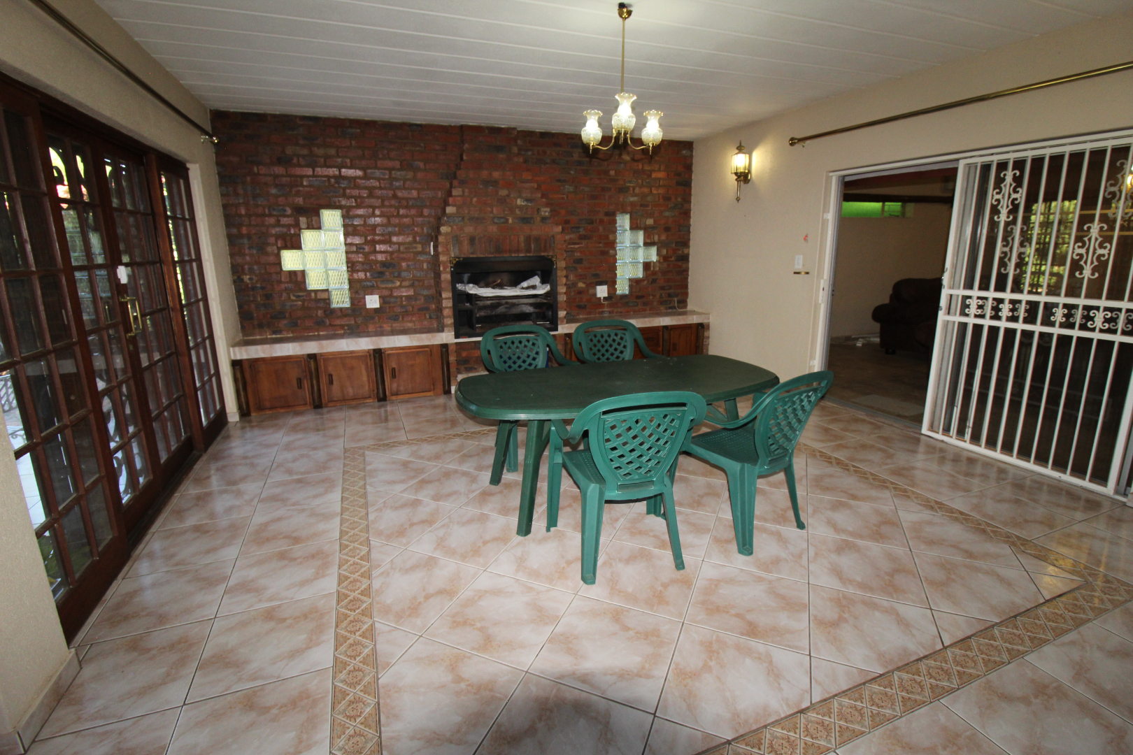Entertain in style in the enclosed braai room, designed for year-round enjoyment. Seamlessly connected to both indoor and outdoor living areas, it is the ideal space for hosting memorable gatherings with family and friends. As you step just outside, you will find a nice patio overlooking the swimming pool.