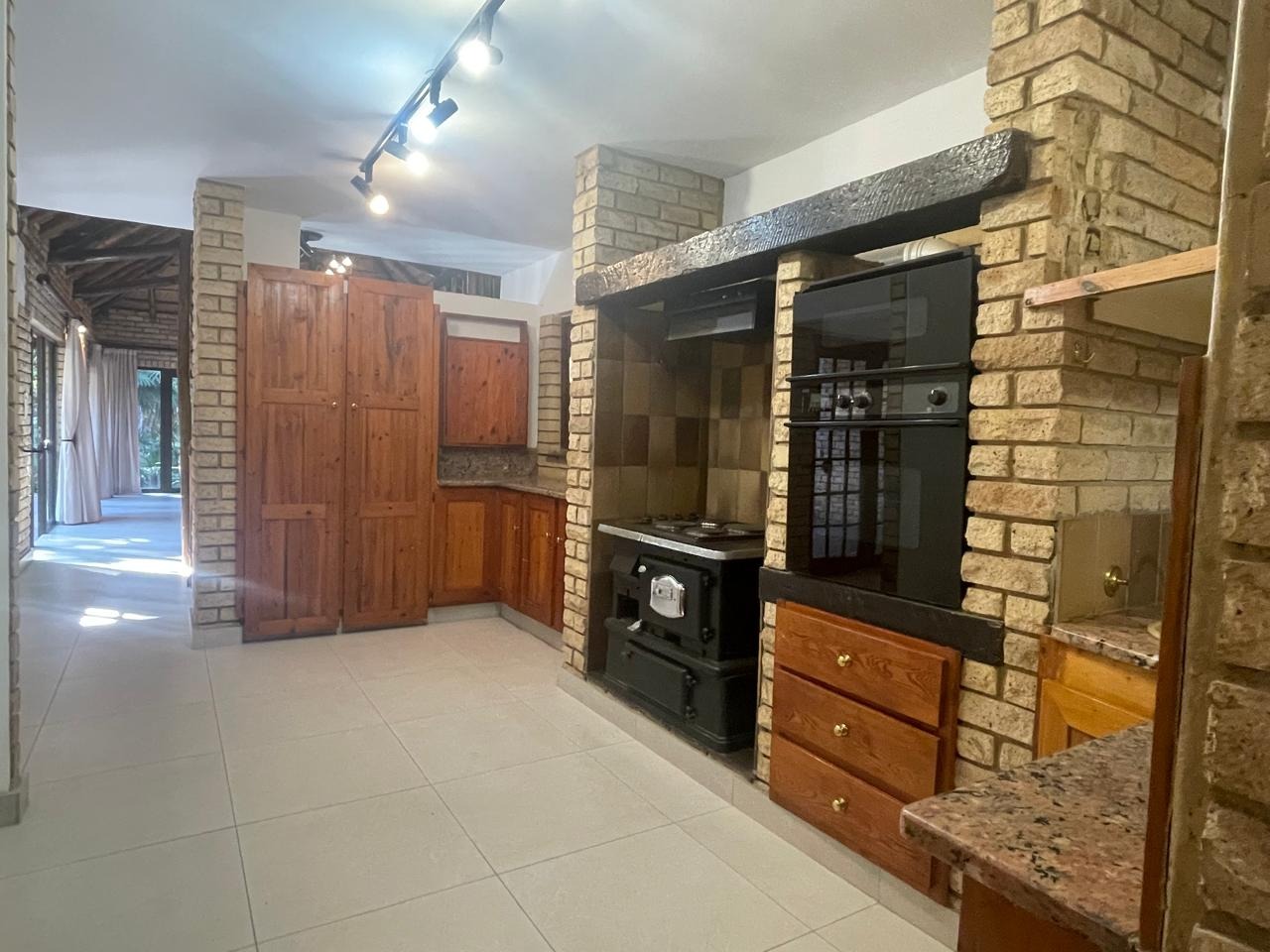 • Open plan farm style kitchen with ample solid wood cupboards and a separate scullery with pantry.