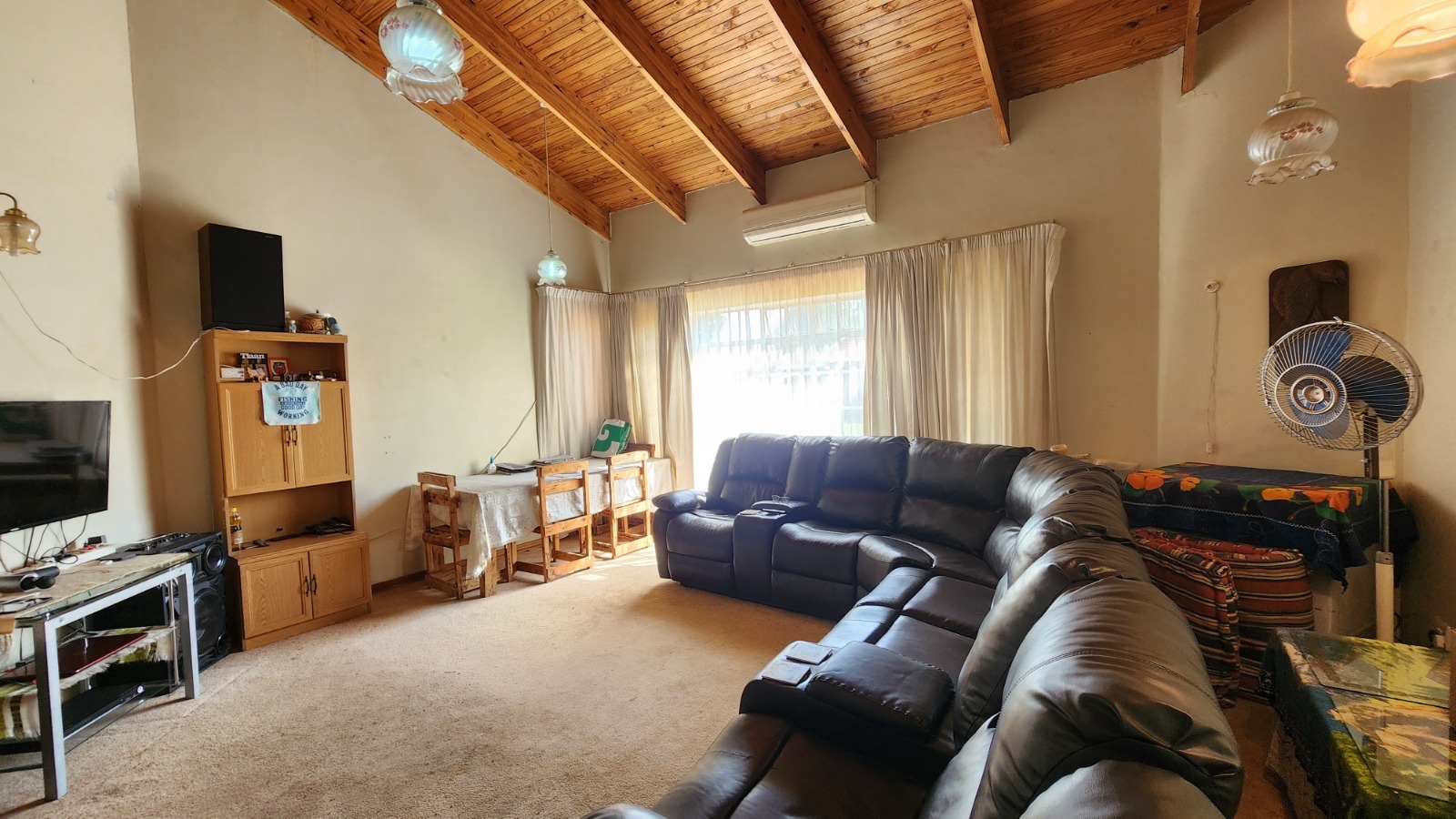 Main House – Unit 1This unit comprises two generously proportioned bedrooms that provide comfortable accommodation, serviced by a well-maintained and neatly finished bathroom. The kitchen is both practical and efficient, featuring a separate scullery that keeps the main cooking and living areas organised and uncluttered. The open-plan television lounge and dining area creates a welcoming, connected living space, ideal for relaxed everyday living. This unit is perfectly suited to a small family, young professionals, or students sharing accommodation.