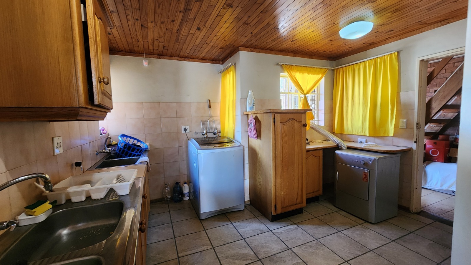 Main House – Unit 1This unit comprises two generously proportioned bedrooms that provide comfortable accommodation, serviced by a well-maintained and neatly finished bathroom. The kitchen is both practical and efficient, featuring a separate scullery that keeps the main cooking and living areas organised and uncluttered. The open-plan television lounge and dining area creates a welcoming, connected living space, ideal for relaxed everyday living. This unit is perfectly suited to a small family, young professionals, or students sharing accommodation.