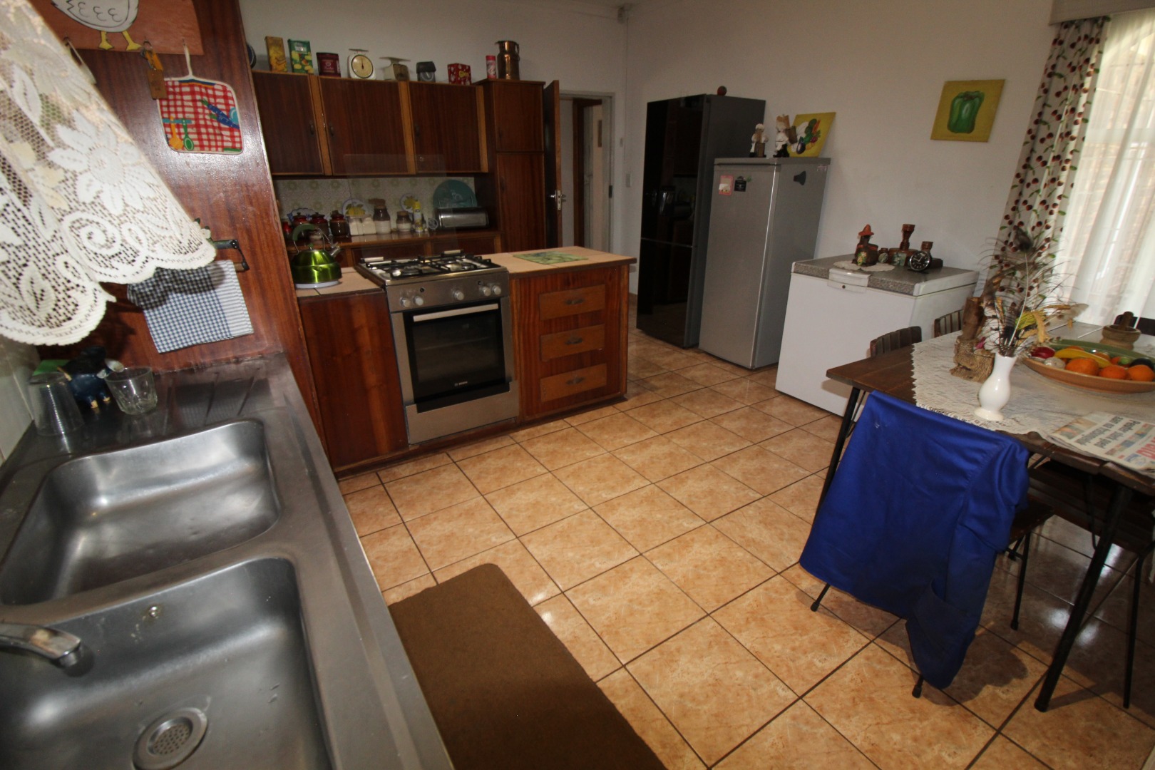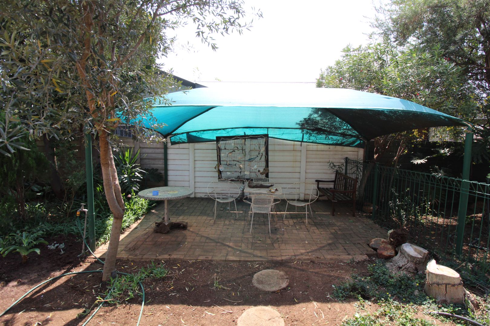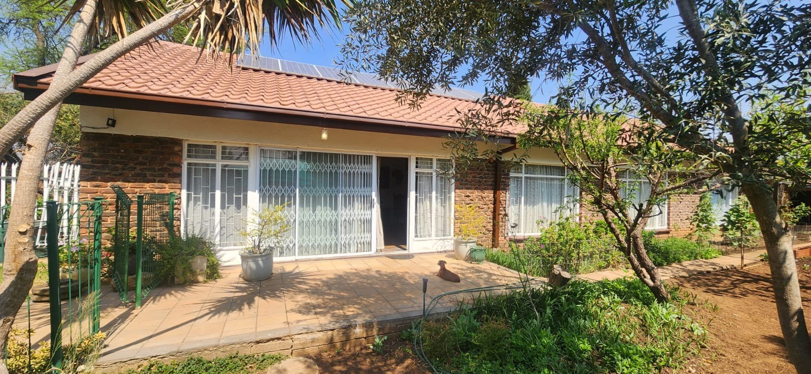 Extras include: A borehole, water tank, alarm system, an electric gate, it's totally fenced, inverter system with 8 solar panels, an outdoor toilet, gas geyser, fruit trees, a garden shed and a nice, covered patio as well.