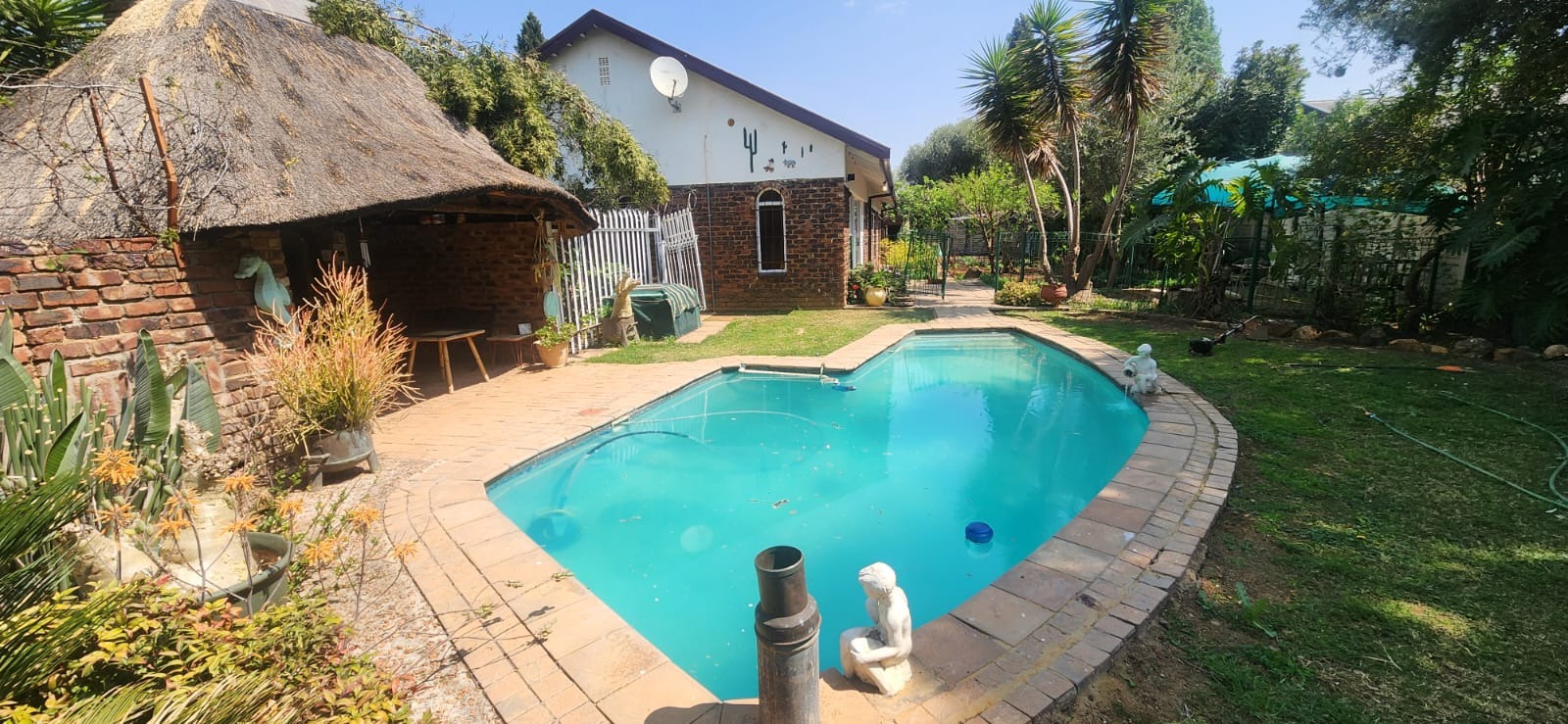 Designed for relaxation and entertainment, the outdoor spaces are a highlight of this property. A charming lapa with a built-in braai overlooks the sparkling swimming pool, creating the perfect setting for summer entertaining. The expansive garden not only provides ample room for children to play freely but also invites quiet moments of leisure amidst the greenery.