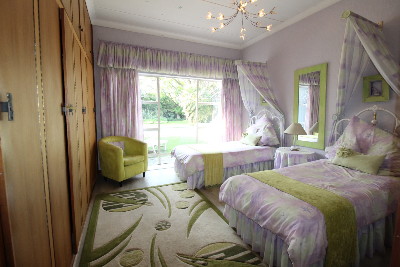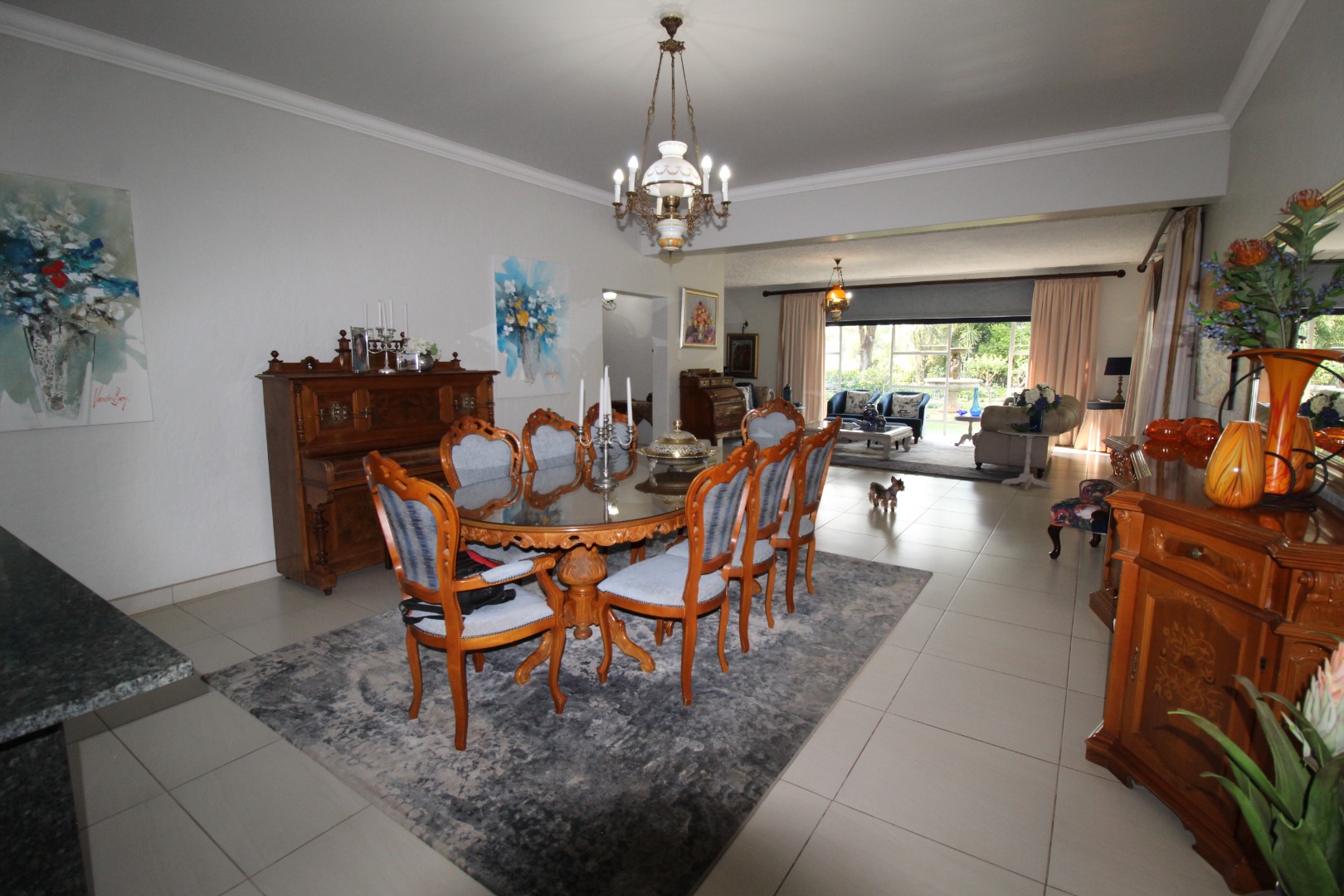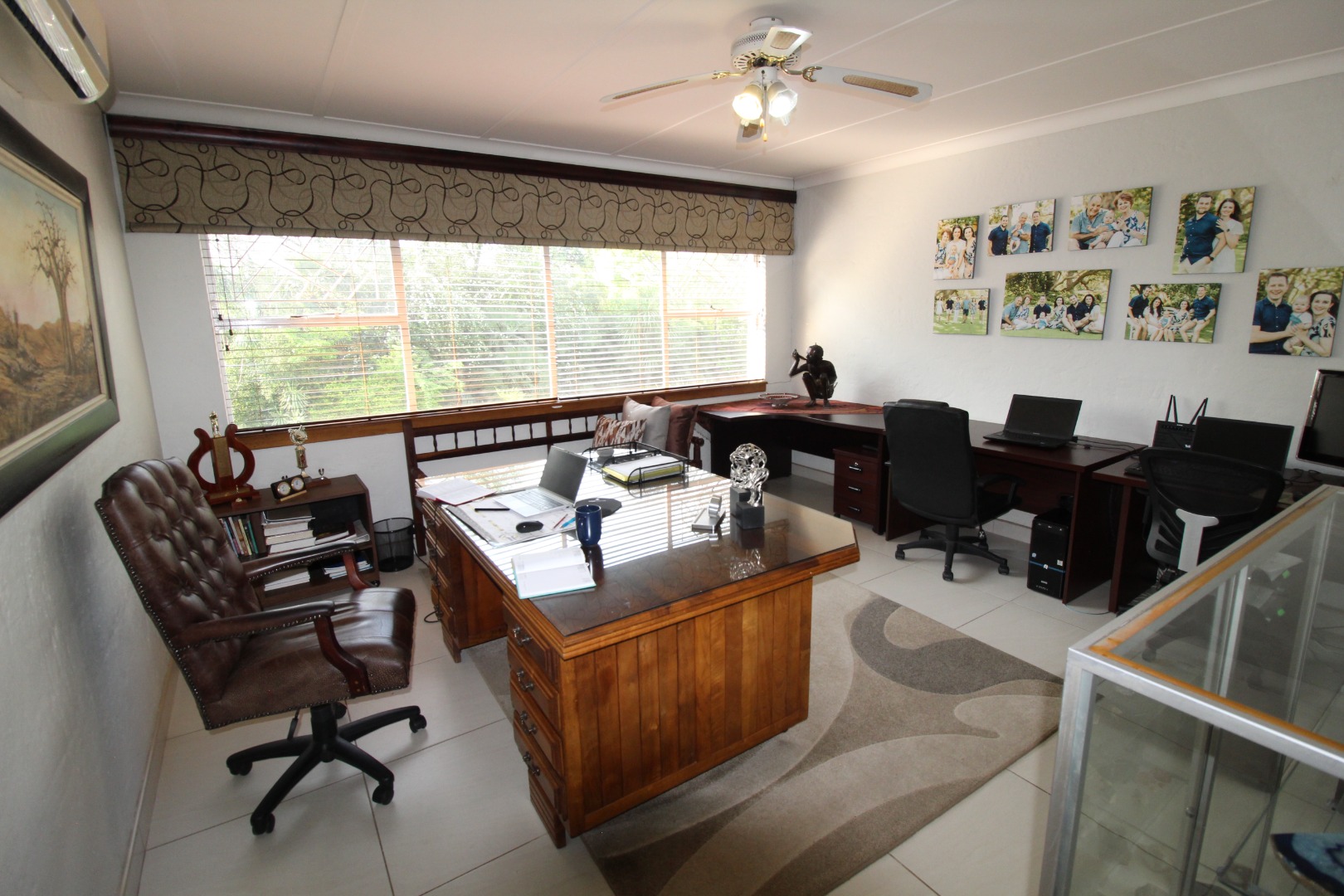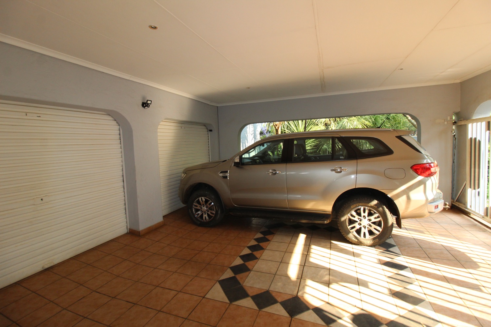 Entertaining is made effortless with a covered patio that leads to a sizeable entertainment space, enhanced by a built-in braai. Overlooking this area is a sparkling swimming pool, set within a beautifully maintained garden, supported by a borehole and irrigation system for year-round convenience.