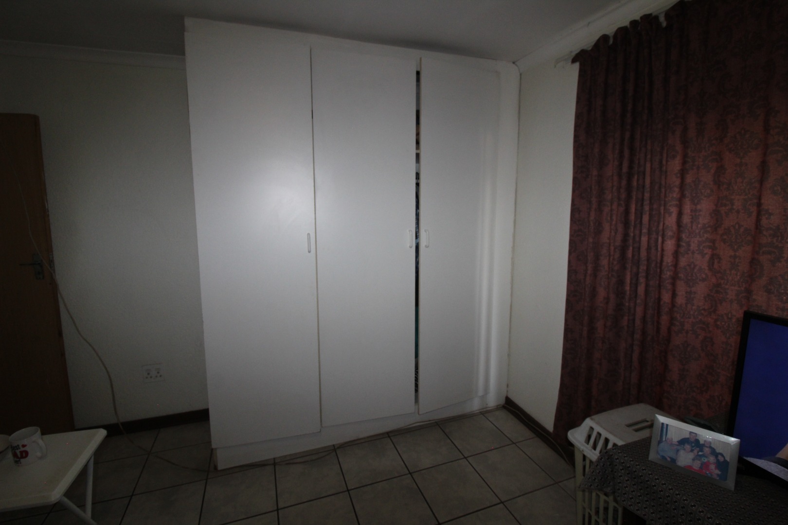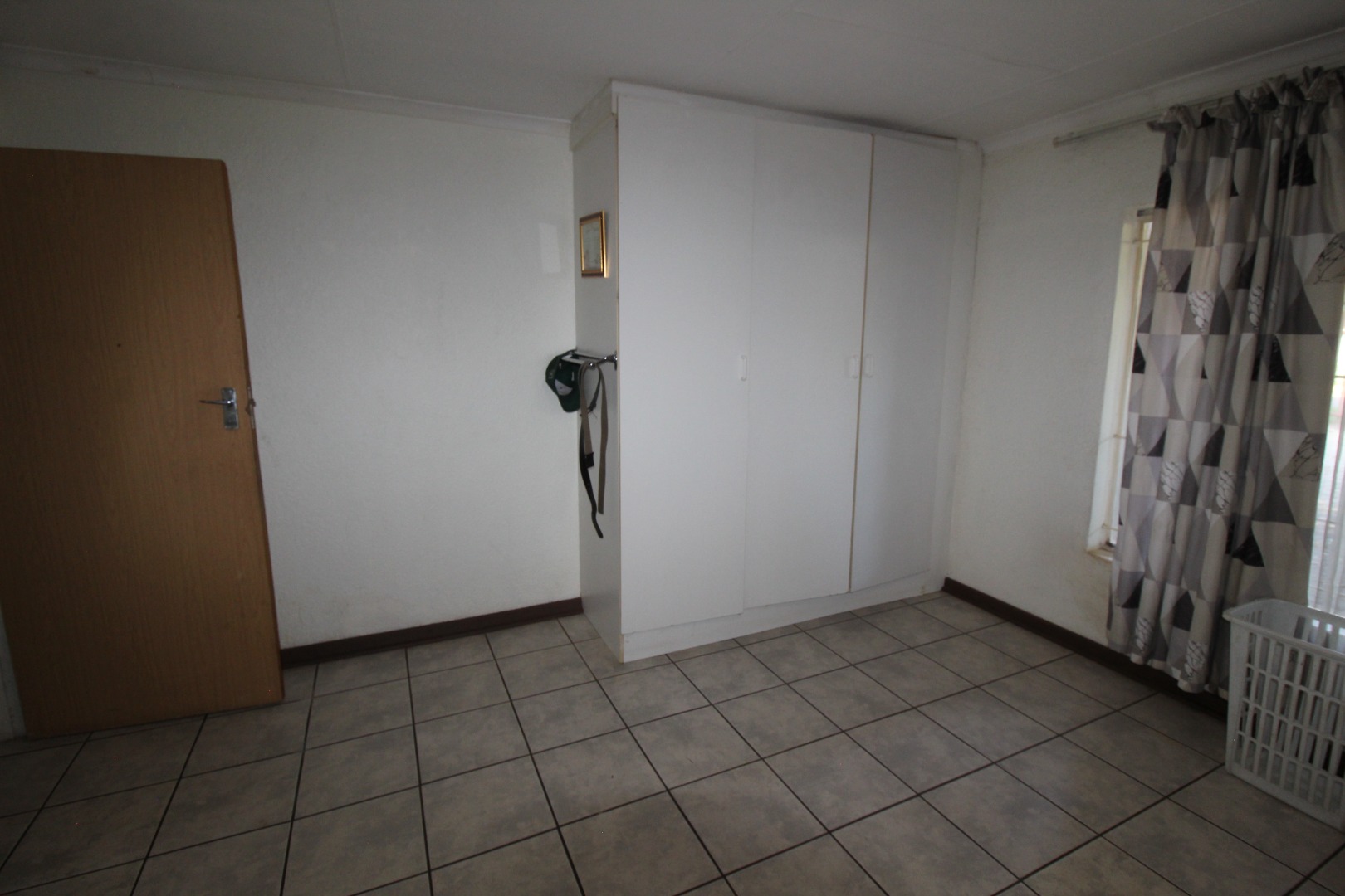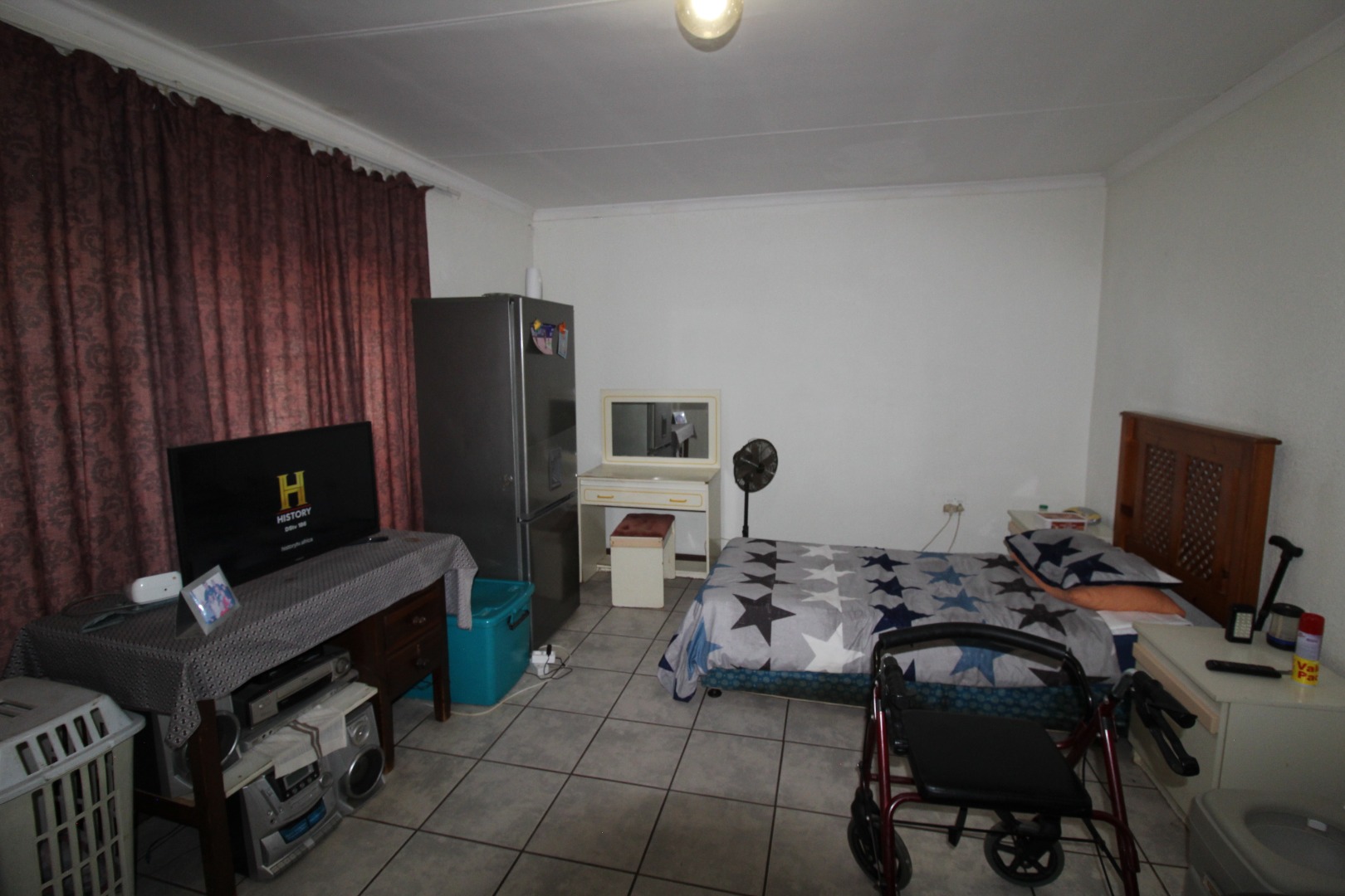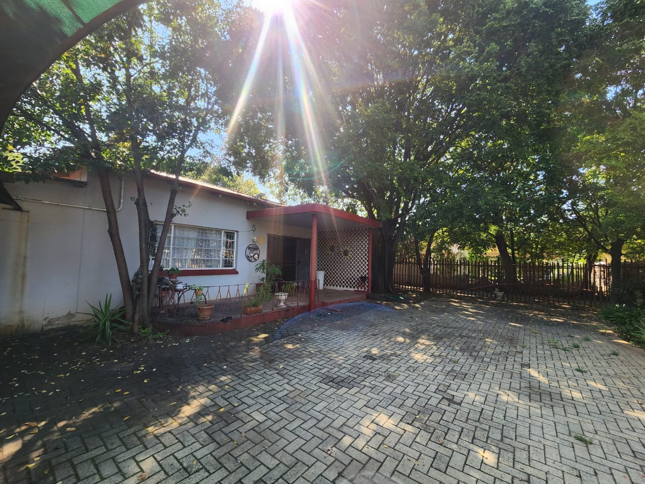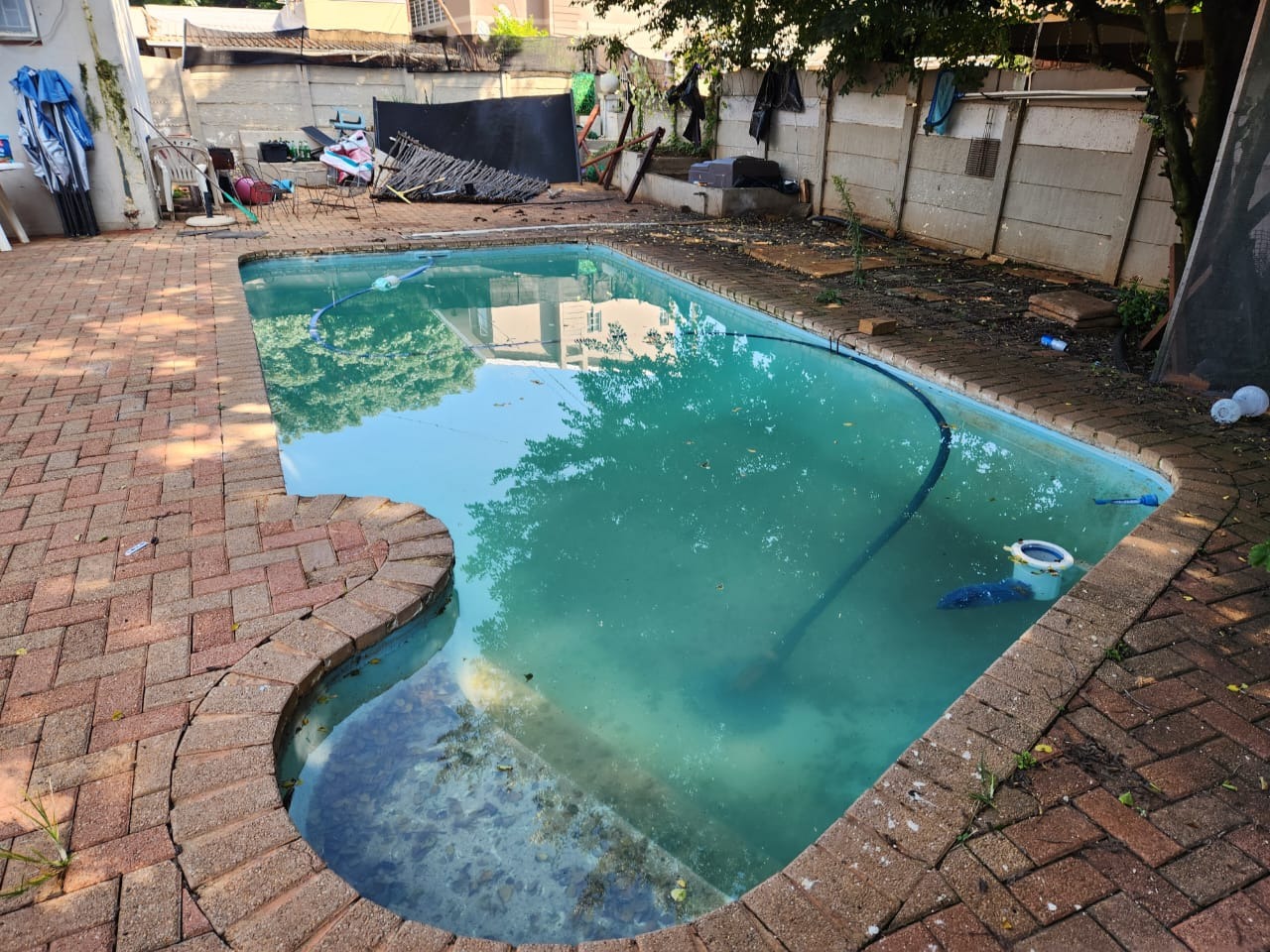 The main residence comprises a welcoming entrance hall, five well-sized bedrooms fitted with built-in cupboards, and three bathrooms. The living areas include a spacious open-plan lounge and kitchen, ideal for comfortable family living and entertaining. Additional features include prepaid electricity, two carports, paved areas, a well-maintained garden, and a swimming pool. The property further offers a storage room, an alarm system, and is fully enclosed with secure fencing.