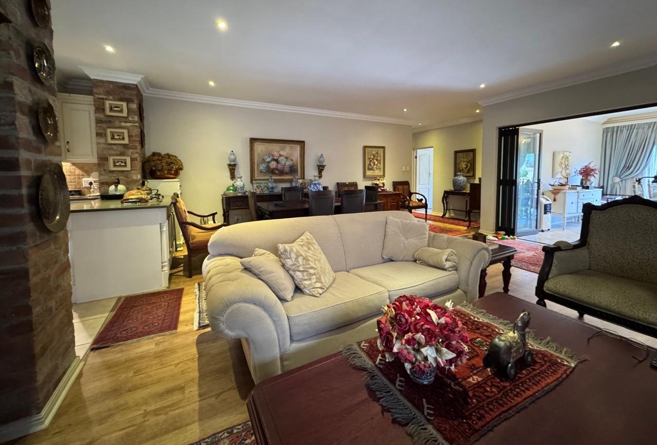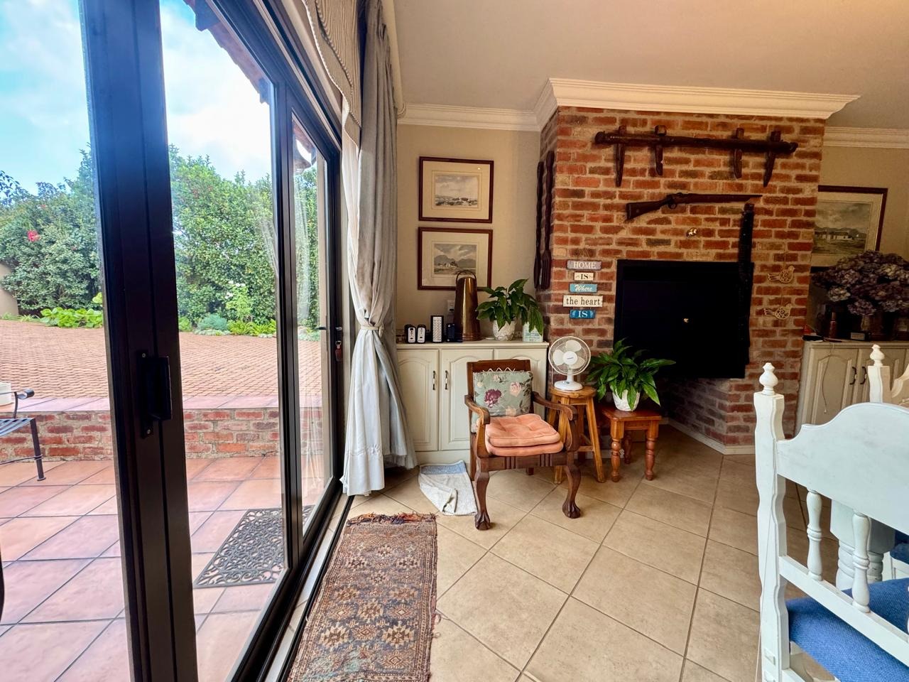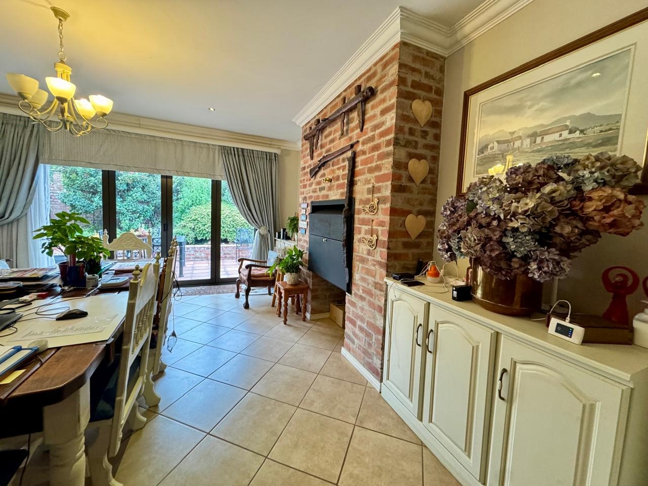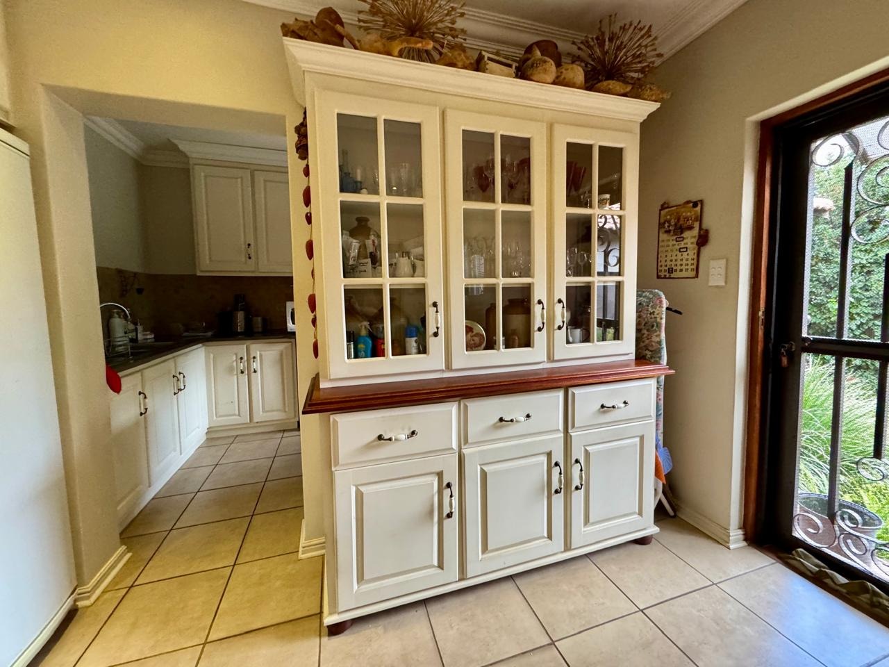 The living areas are spacious and inviting, flowing easily into a beautiful kitchen fitted with a walk-in pantry and a separate scullery. A large indoor entertainment room with built-in braai forms part of the living space, offering the perfect spot for weekend braais and quiet evenings overlooking the private, established garden.
