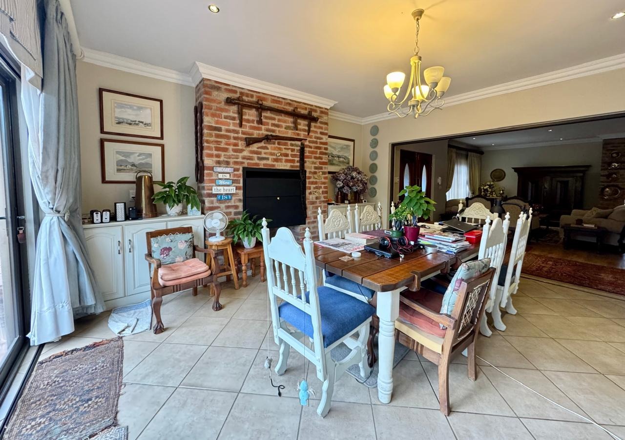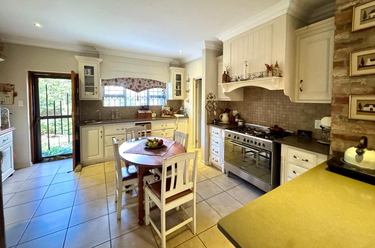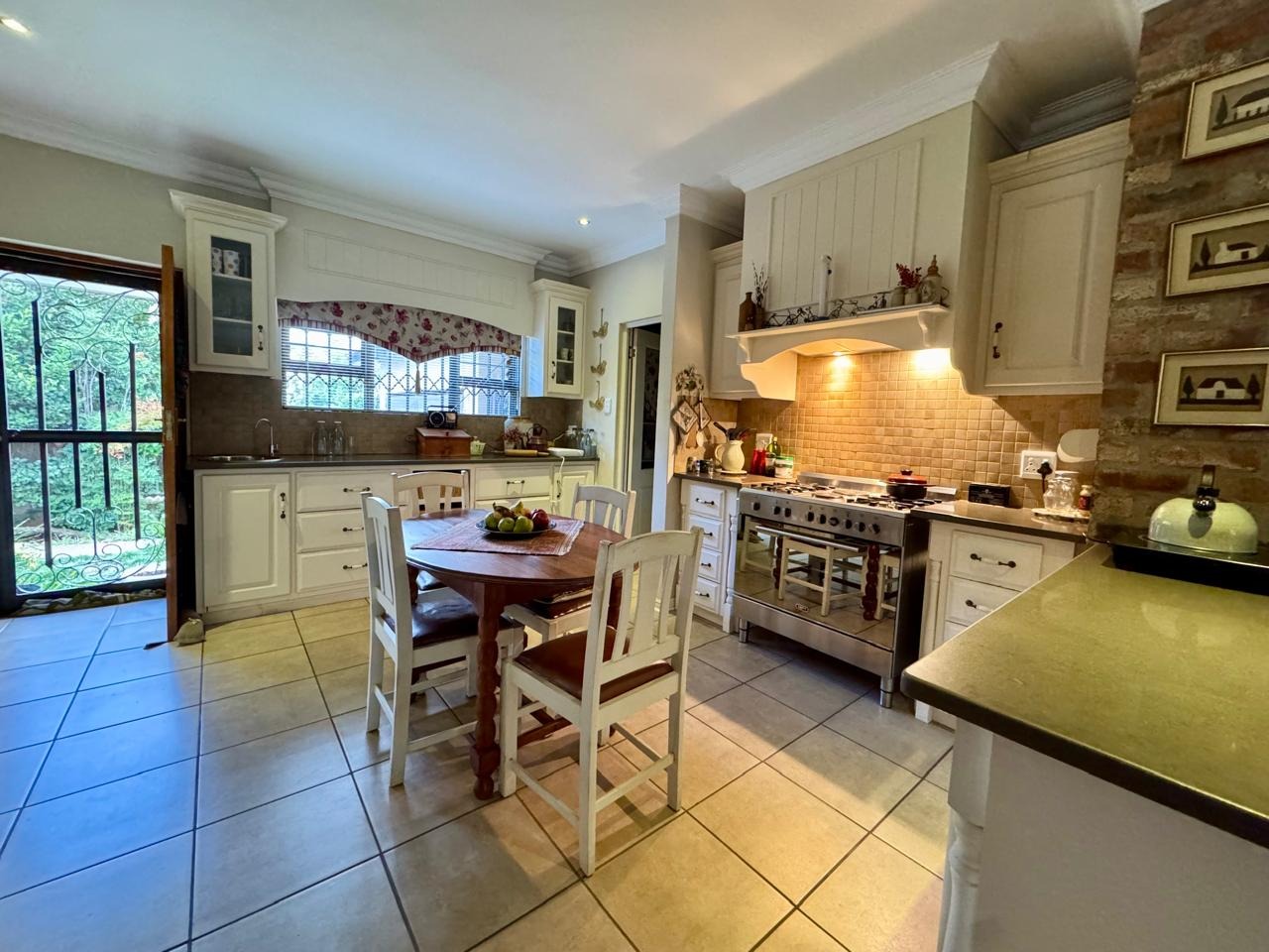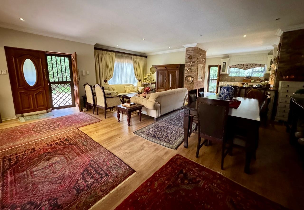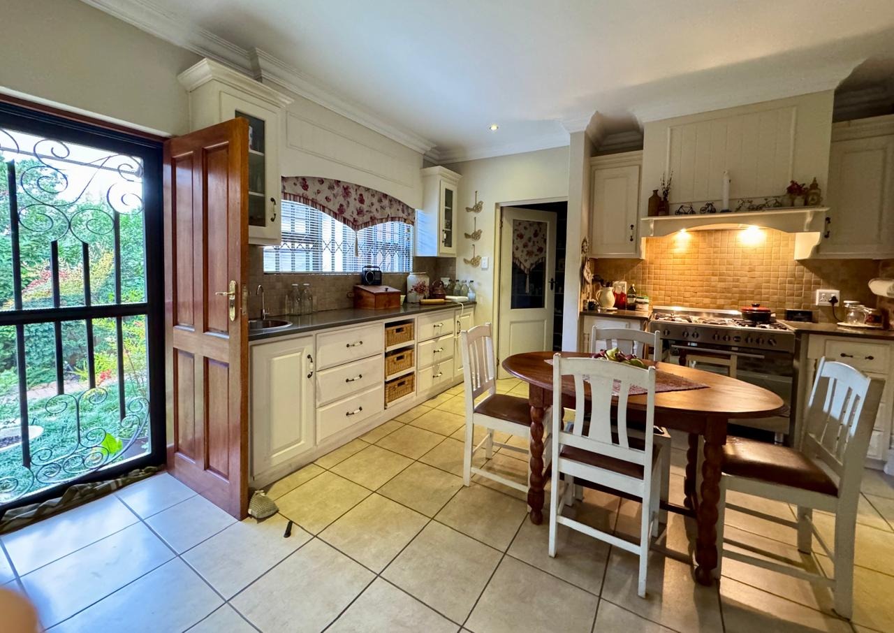 The living areas are spacious and inviting, flowing easily into a beautiful kitchen fitted with a walk-in pantry and a separate scullery. A large indoor entertainment room with built-in braai forms part of the living space, offering the perfect spot for weekend braais and quiet evenings overlooking the private, established garden.