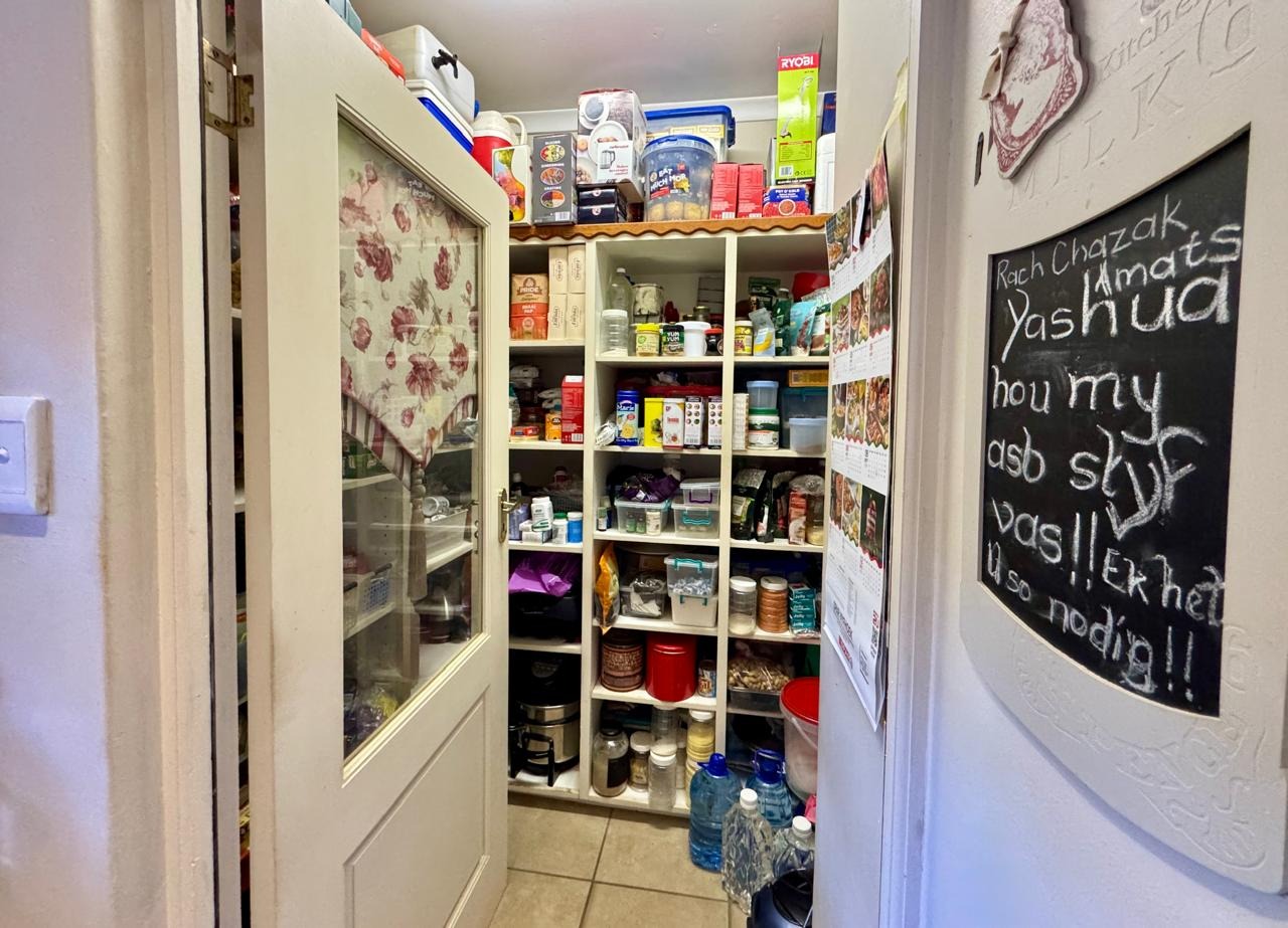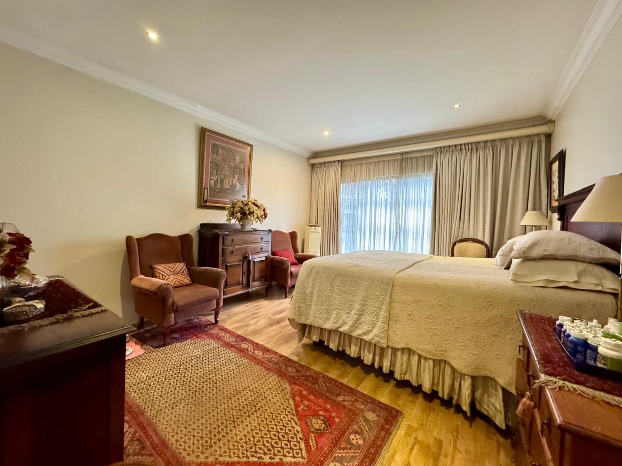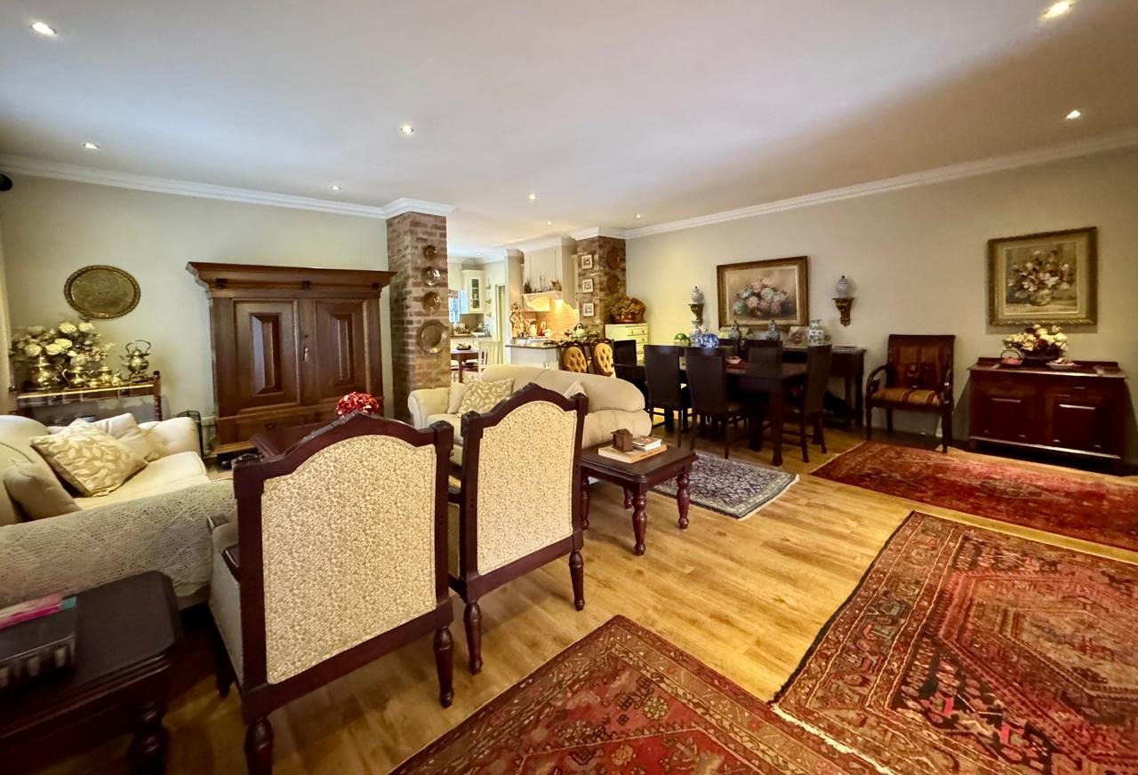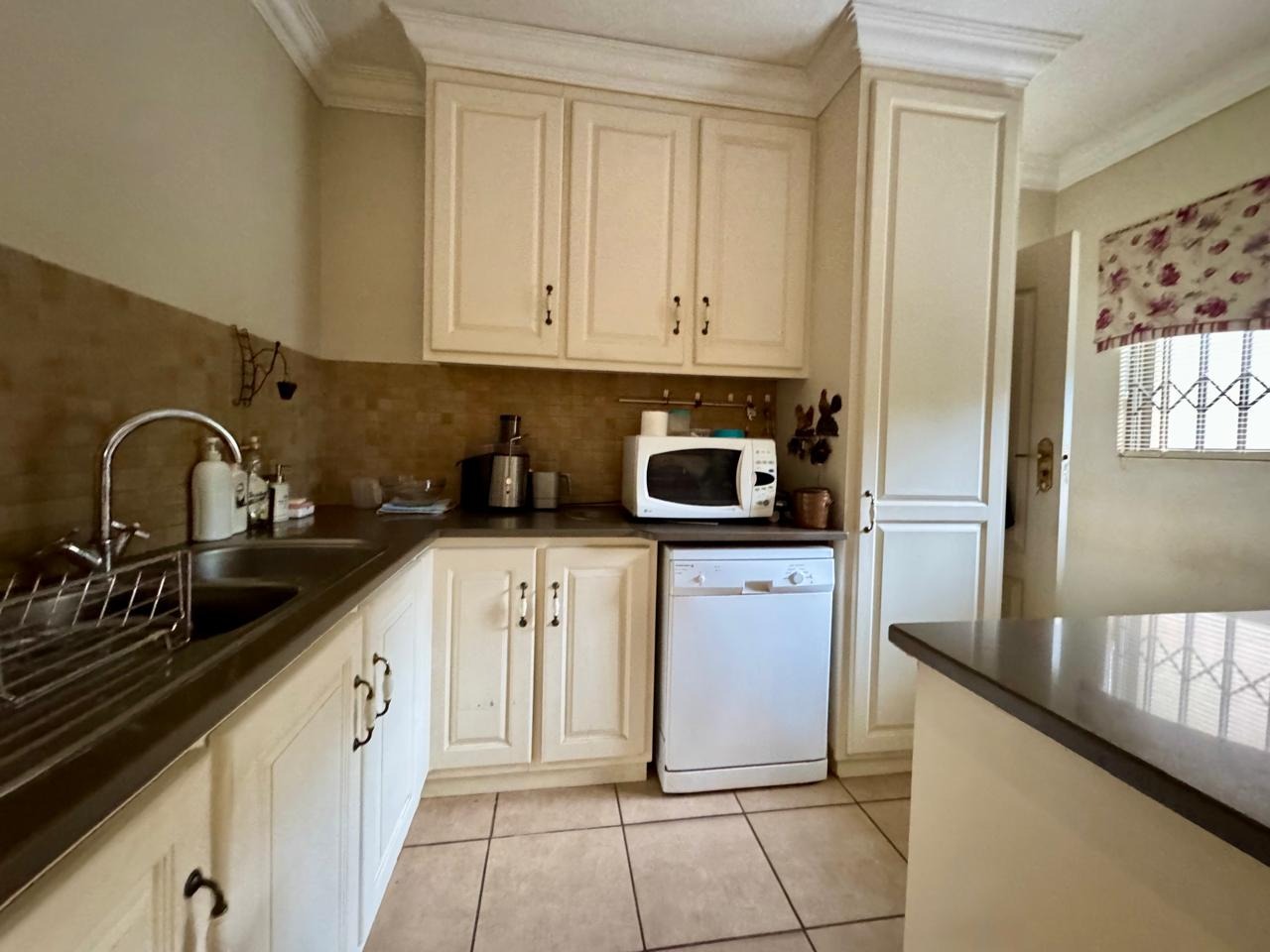 The living areas are spacious and inviting, flowing easily into a beautiful kitchen fitted with a walk-in pantry and a separate scullery. A large indoor entertainment room with built-in braai forms part of the living space, offering the perfect spot for weekend braais and quiet evenings overlooking the private, established garden.