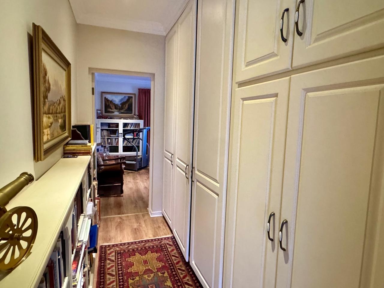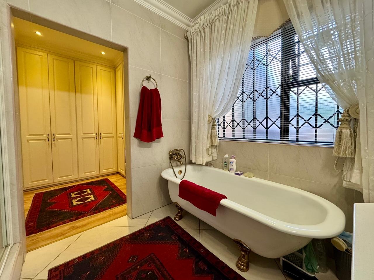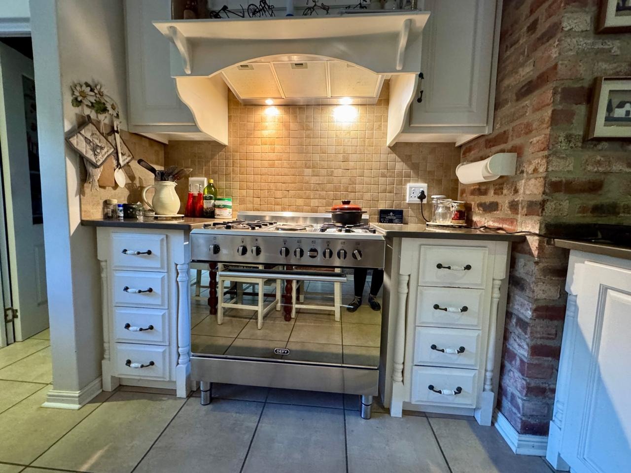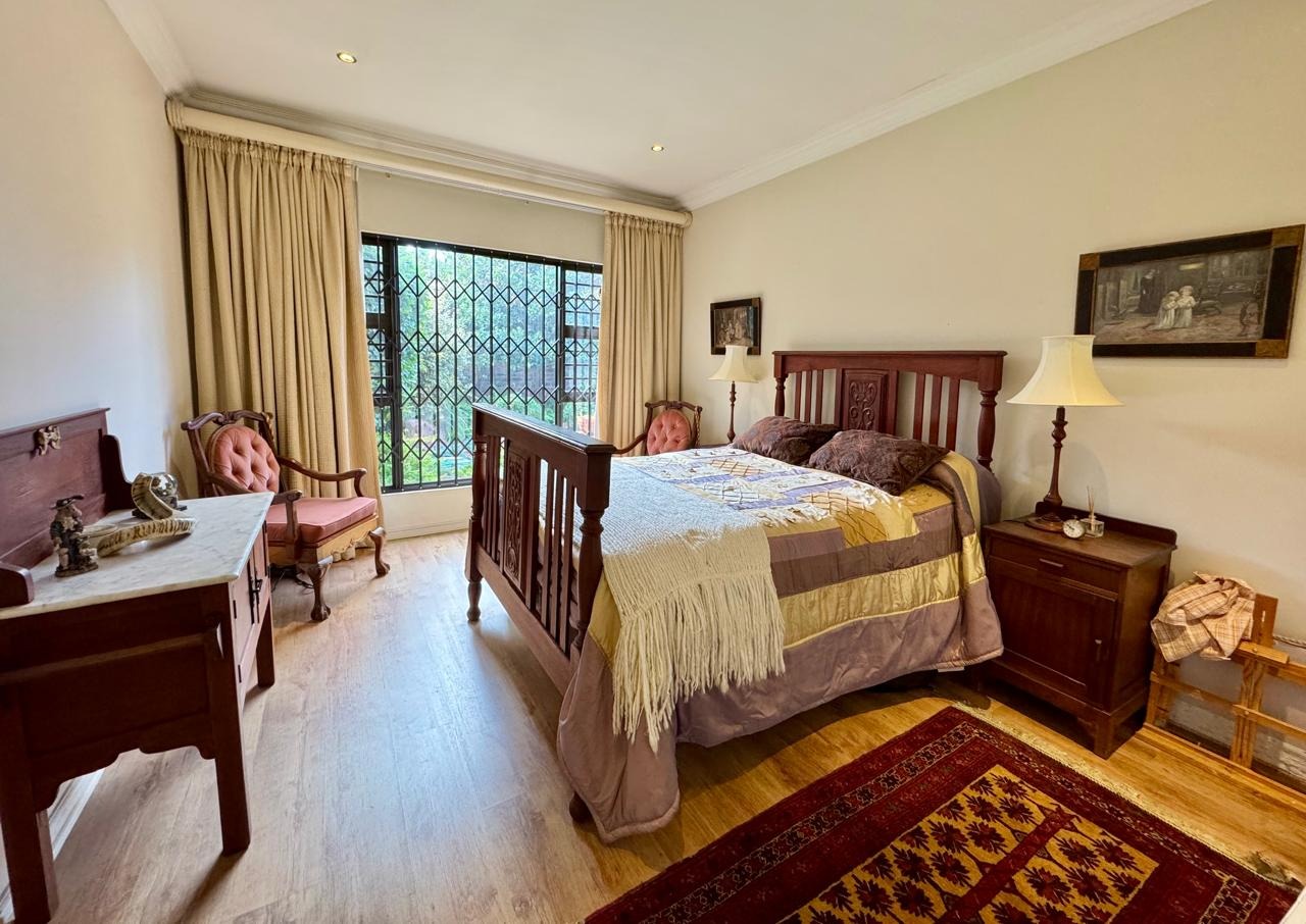 The living areas are spacious and inviting, flowing easily into a beautiful kitchen fitted with a walk-in pantry and a separate scullery. A large indoor entertainment room with built-in braai forms part of the living space, offering the perfect spot for weekend braais and quiet evenings overlooking the private, established garden.