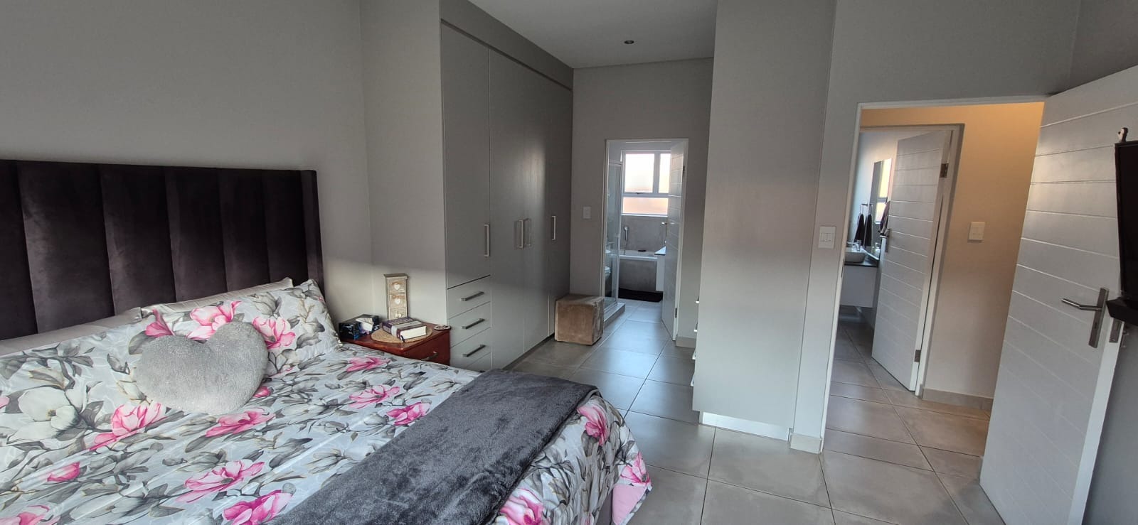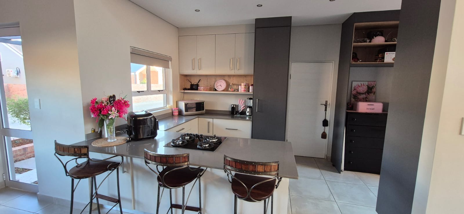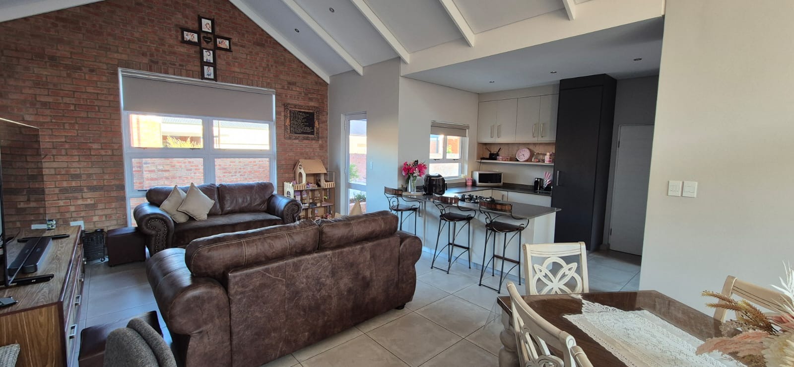 Set against beautifully landscaped communal gardens, these homes are crafted for effortless flow and refined living. Each unit boasts 3 spacious bedrooms, 2 luxurious bathrooms, an open-plan kitchen with breakfast nook and separate scullery, and a generous living area that opens through stacker doors onto a patio with built-in braai and a double electric garage.