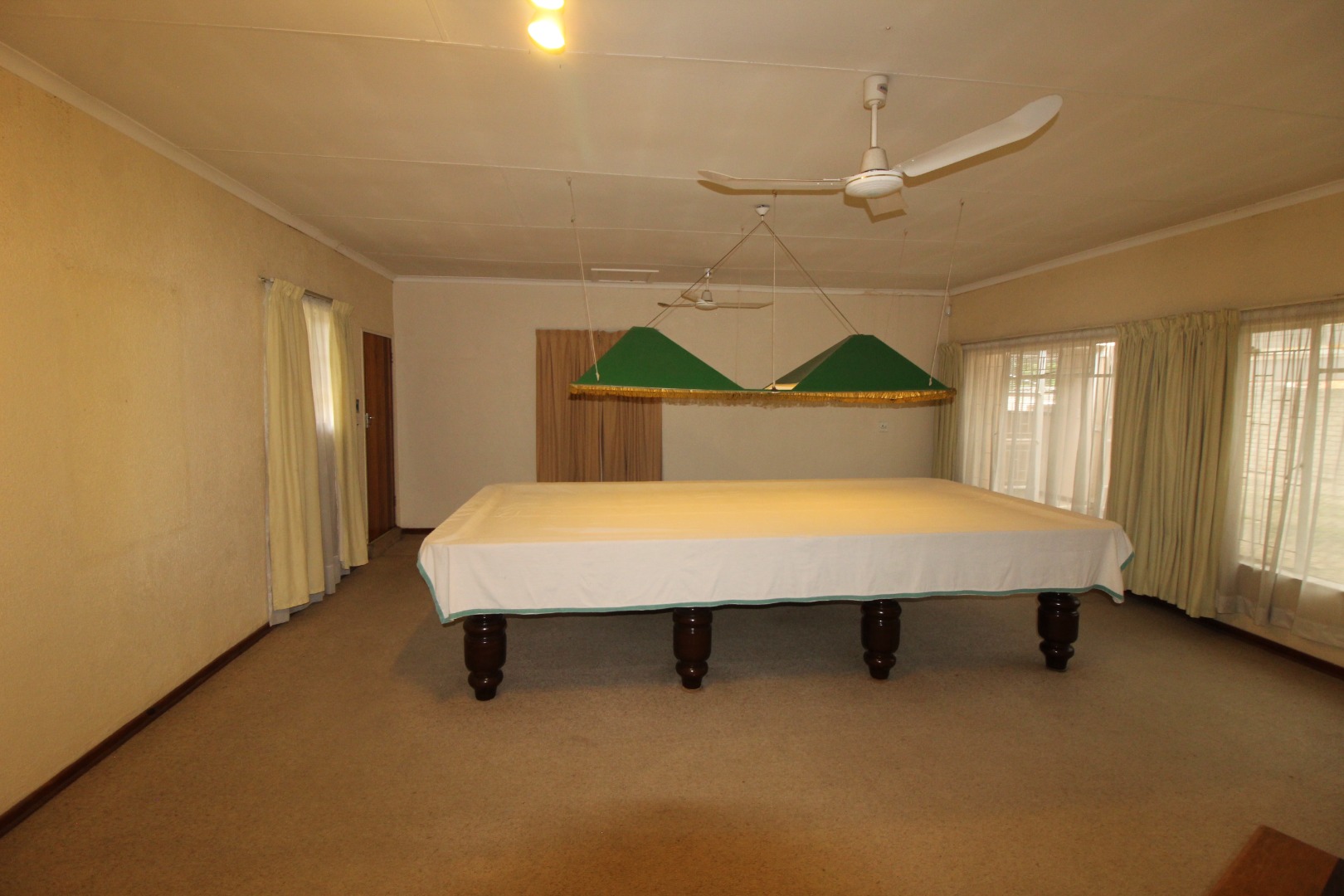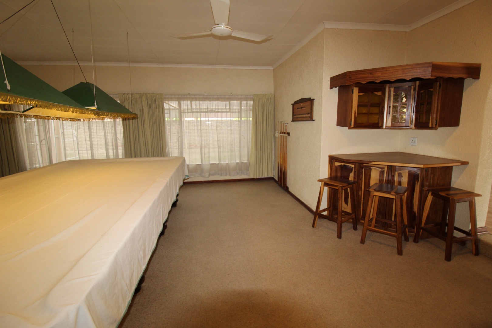 Living Areas: Three inviting living rooms offer ample space for family gatherings or quiet evenings. One of the living rooms has a cozy fireplace. An additional entertainment room featuring a large snooker table provides a dedicated space for hosting guests and leisure activities. This entertainment room has a built-in bar as well. The snooker table is included in the buy.