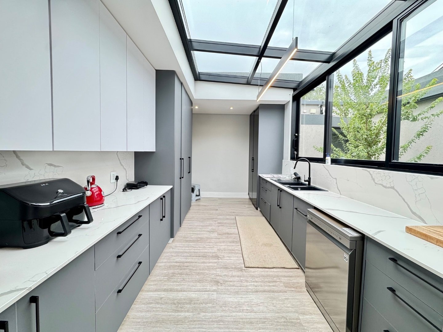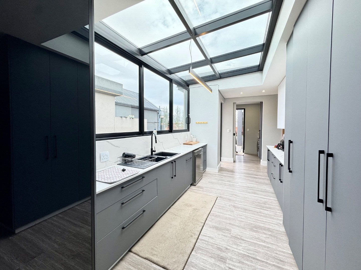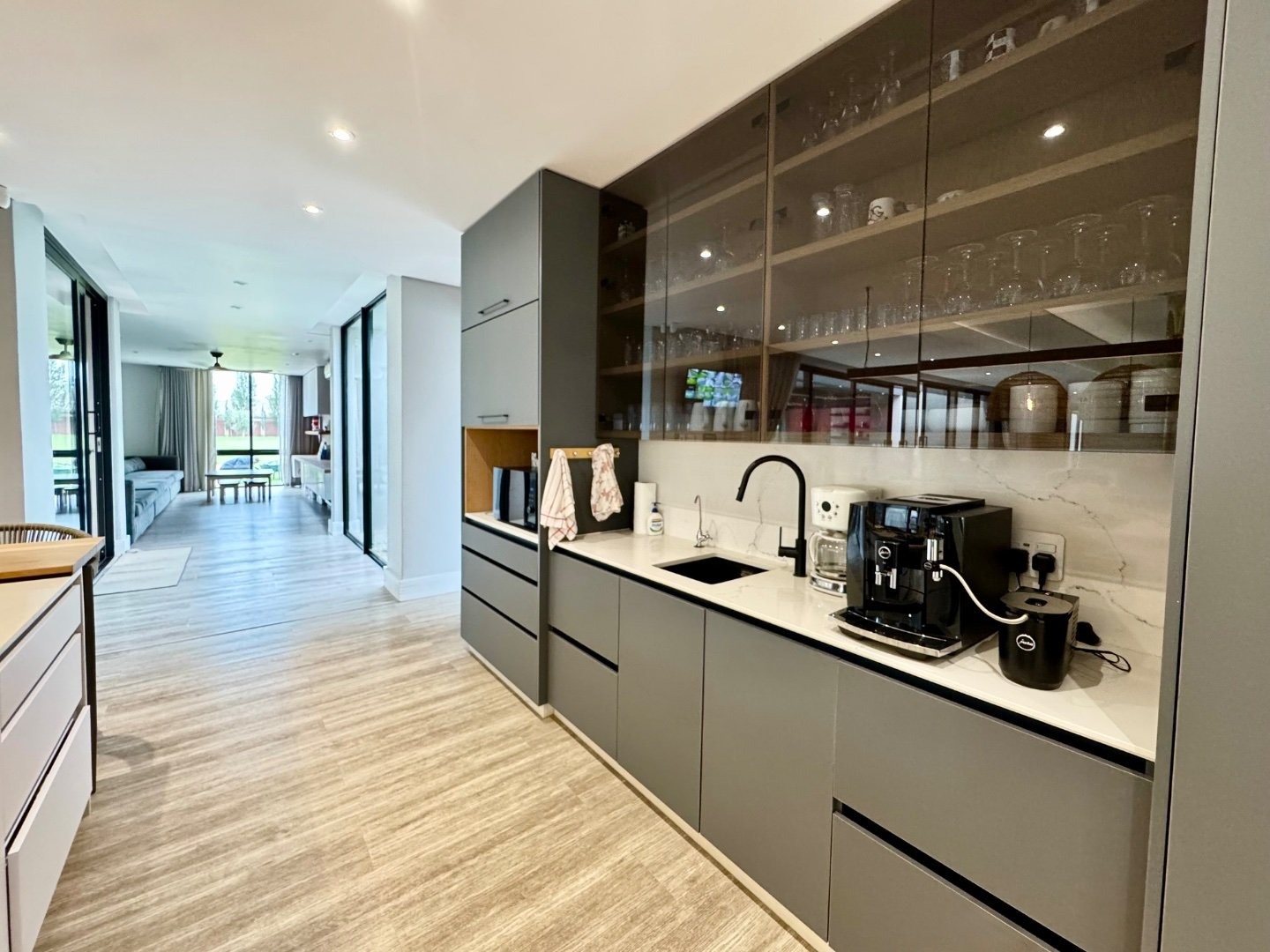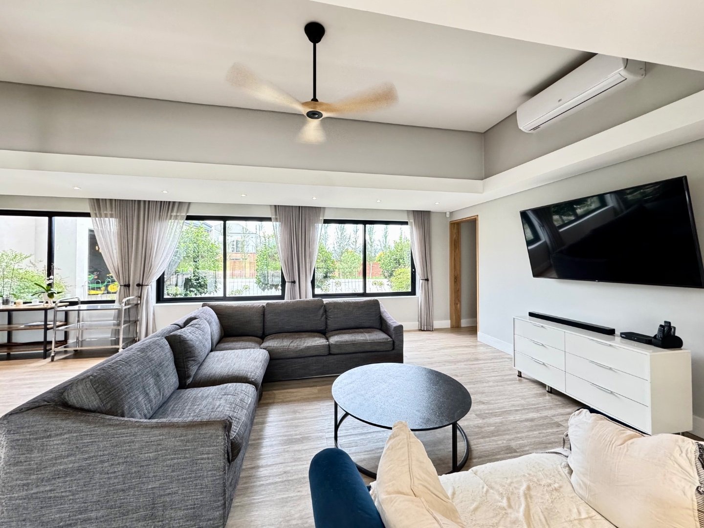 Beyond its striking aesthetics, this home is designed for off-grid, sustainable living, with a full solar system and a 36kW inverter ensuring uninterrupted power. Two strong boreholes, an electronic irrigation system, and a water filtration system guarantee a reliable and eco-friendly water supply. Comfort is prioritised throughout, with nine air conditioning units and two fireplaces.