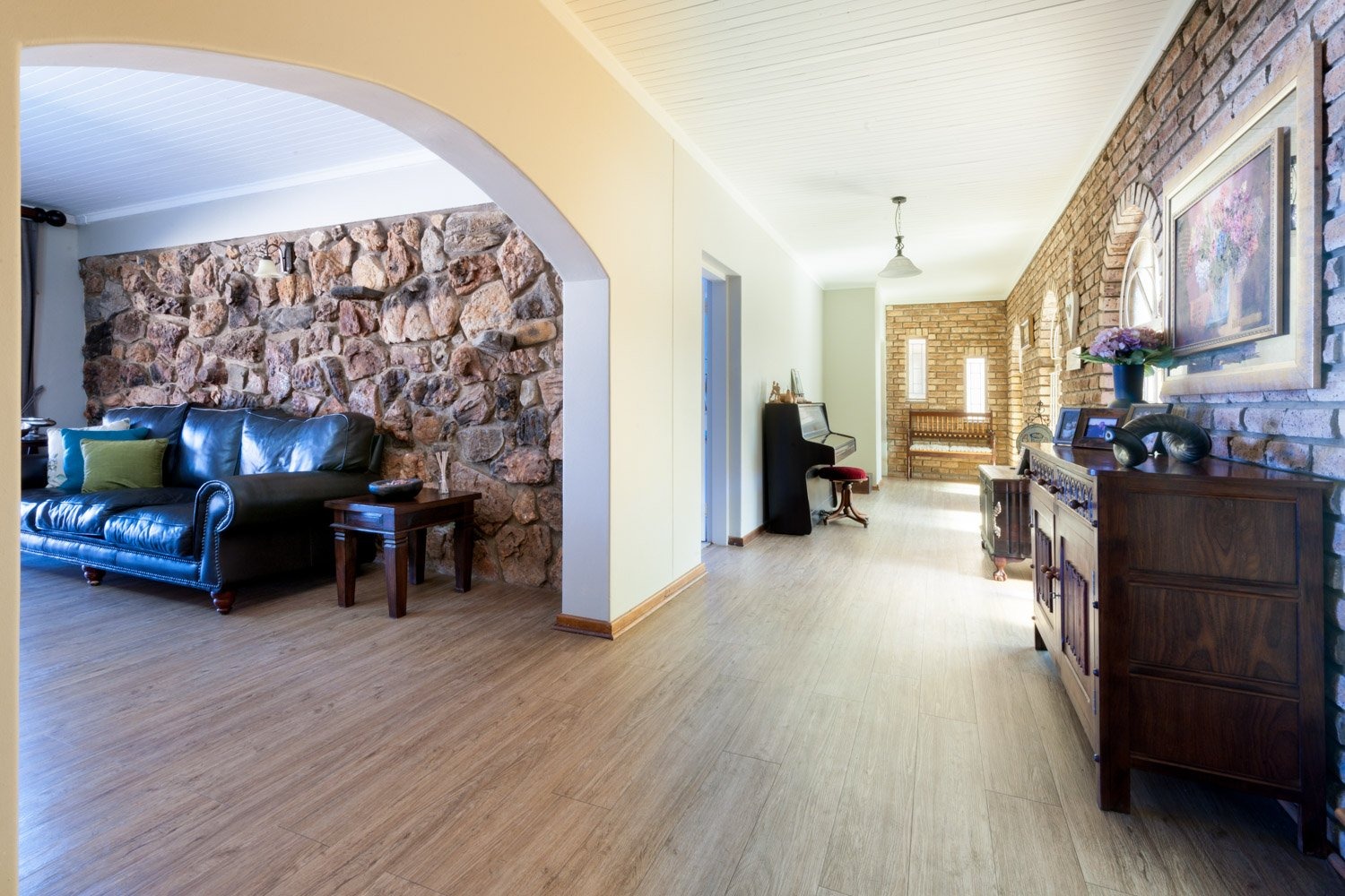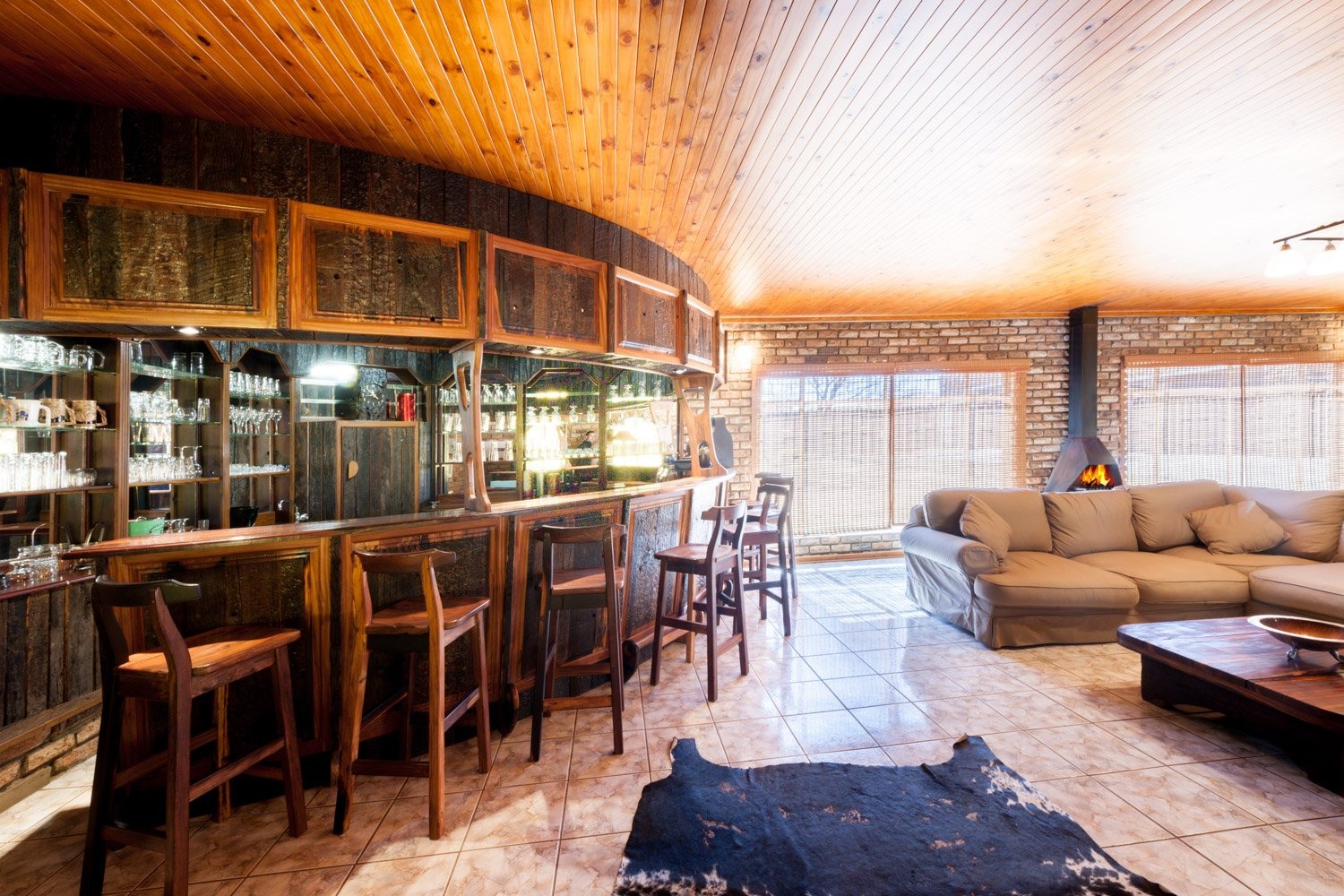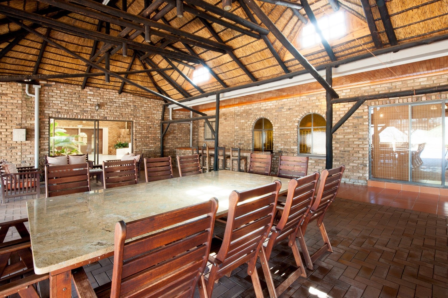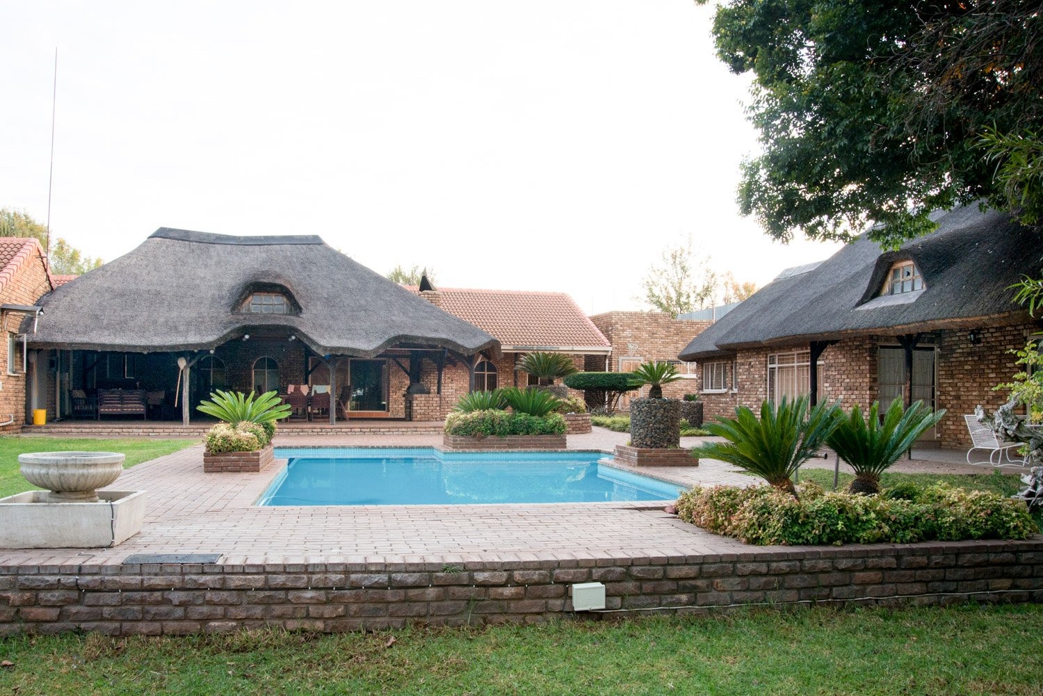 Small Holding in North West, Potchefstroom Property. Small Holding in the town, 8.5 acres, which main house built on 6550 sqm . The rest of the small holding exist of 19 full title stands and 2 sectional stands. Large development potential. The house has five bedrooms and full study - ideal for home office. Large open plan living area with kitchen, dining room, lounge and TV room. Great cozy lapa with built in braai and Jacuzzi. Large entertainment room with built in bar and pool table, and fireplace. Bathrooms are newly renovated. 8 Garage and large storage space. Ideal for a large family with the prospects of developing the land.