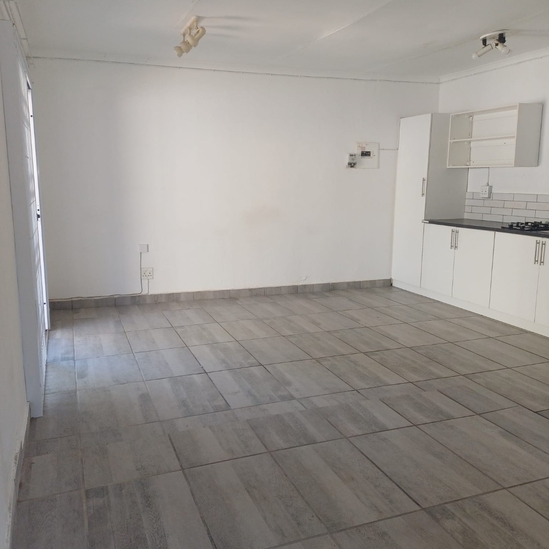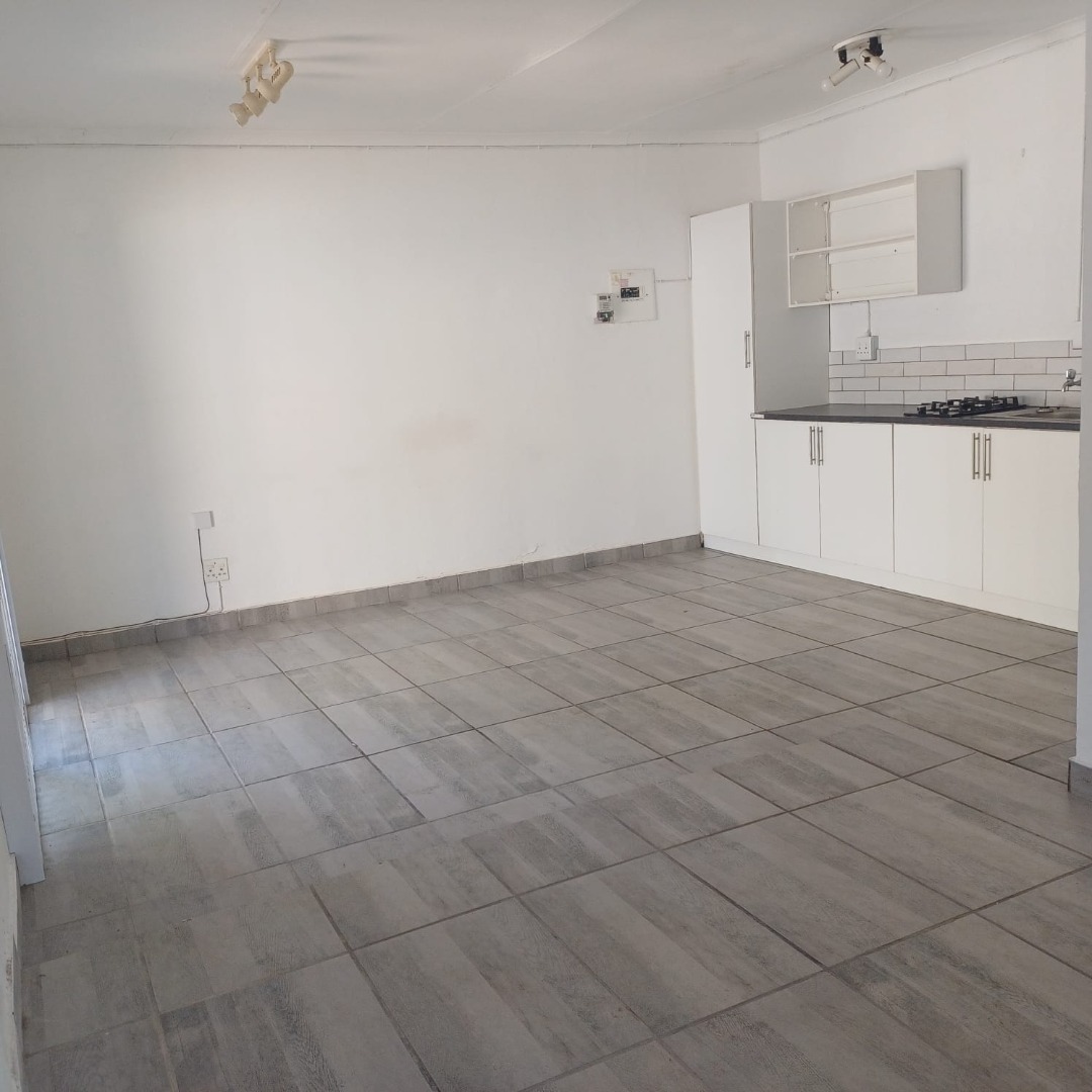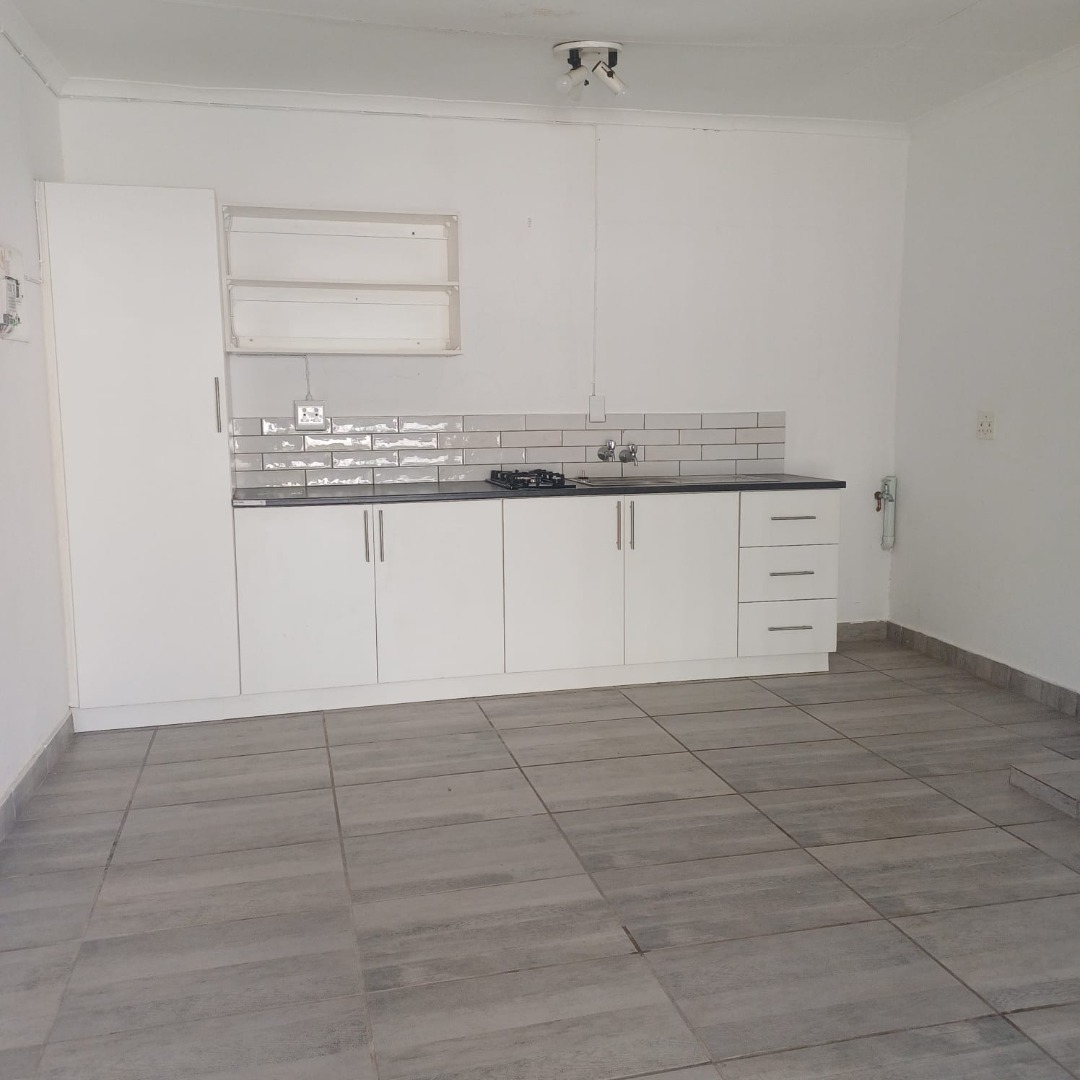 The kitchen has a lot of built in cupboards with a gas stove and a washing machine connection.