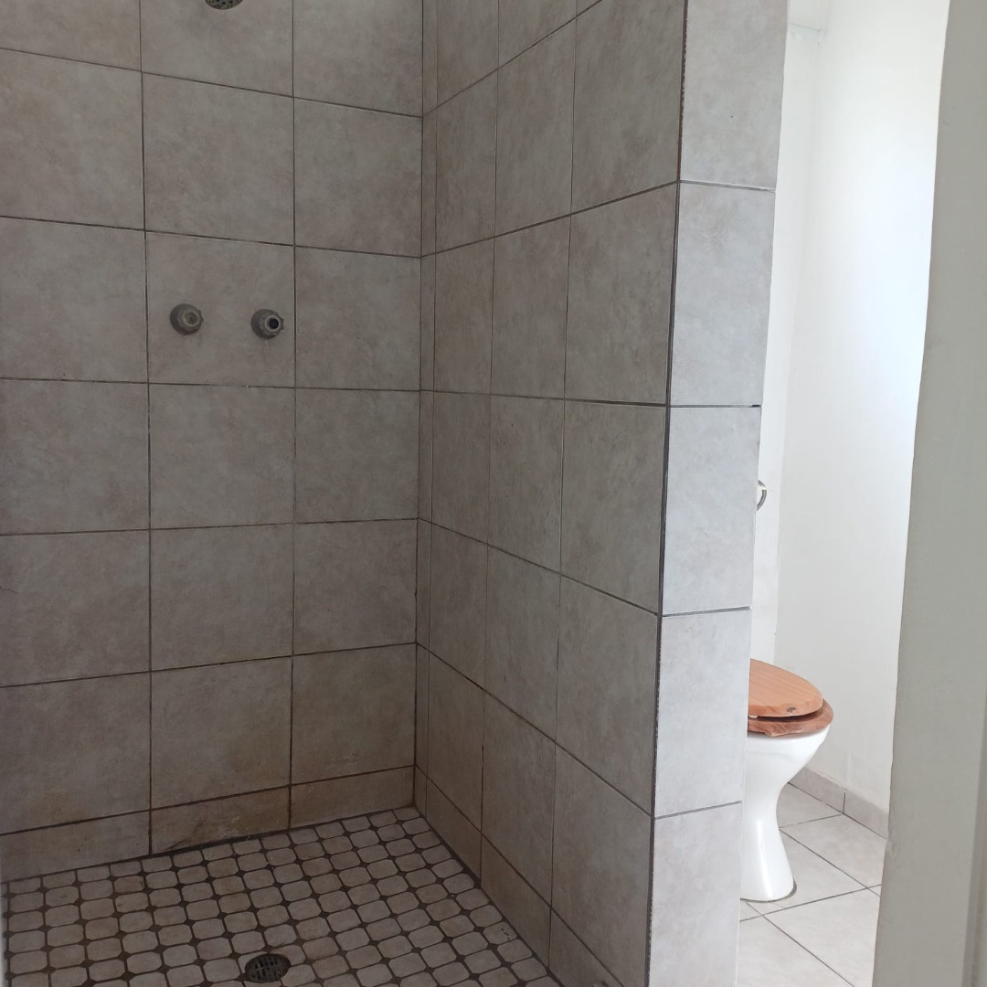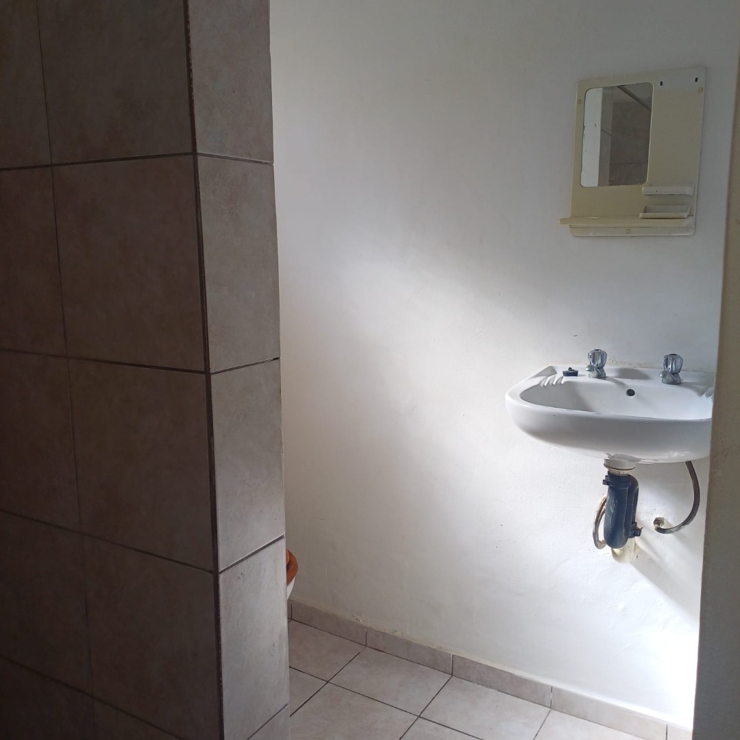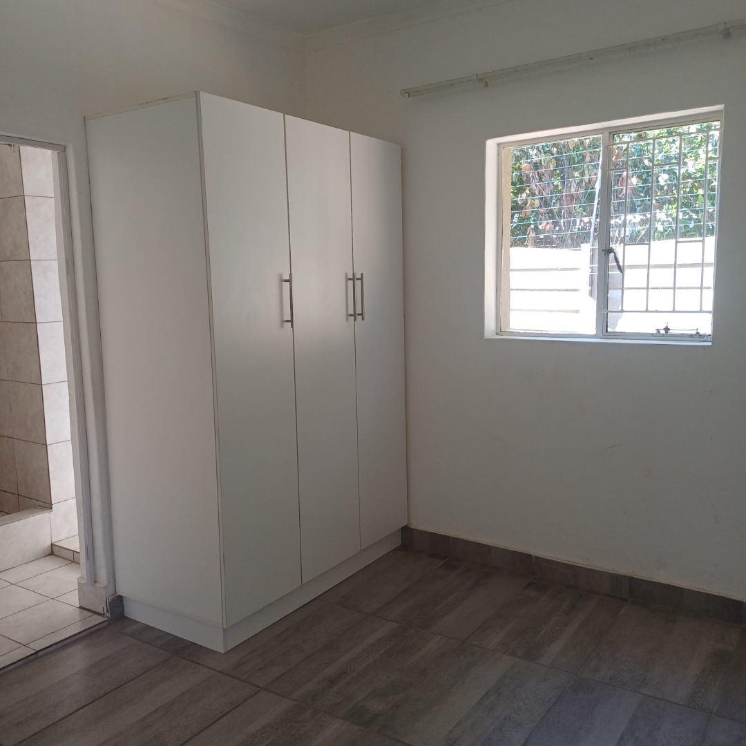 The kitchen has a lot of built in cupboards with a gas stove and a washing machine connection.