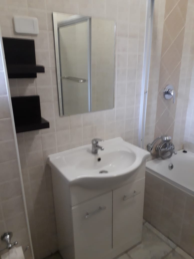 This unit has a bath, shower, toilet and basin with modern finishes.