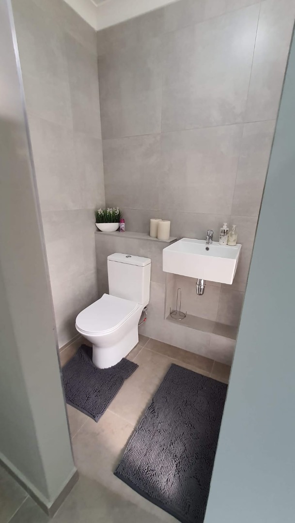 The main house boasts expansive, light-filled living areas thoughtfully designed for both relaxation and entertaining. A very welcoming entrance hall greets you, then it is followed by a stylish lounge and TV-room flow together seamlessly, and there is a dining room as well in the heart of the home, flowing effortlessly into a well-appointed kitchen with ample cupboard space, perfectly suited for family gatherings and everyday living. There is a separate scullery and laundry area as well. This house has four bedrooms with built-in cupboards and 2.5 bathrooms, including an en-suite bathroom.