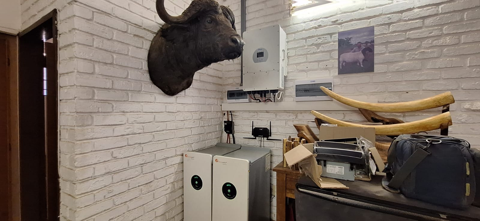 Batteries and 12x150W Solar panels. Totally off-Grid