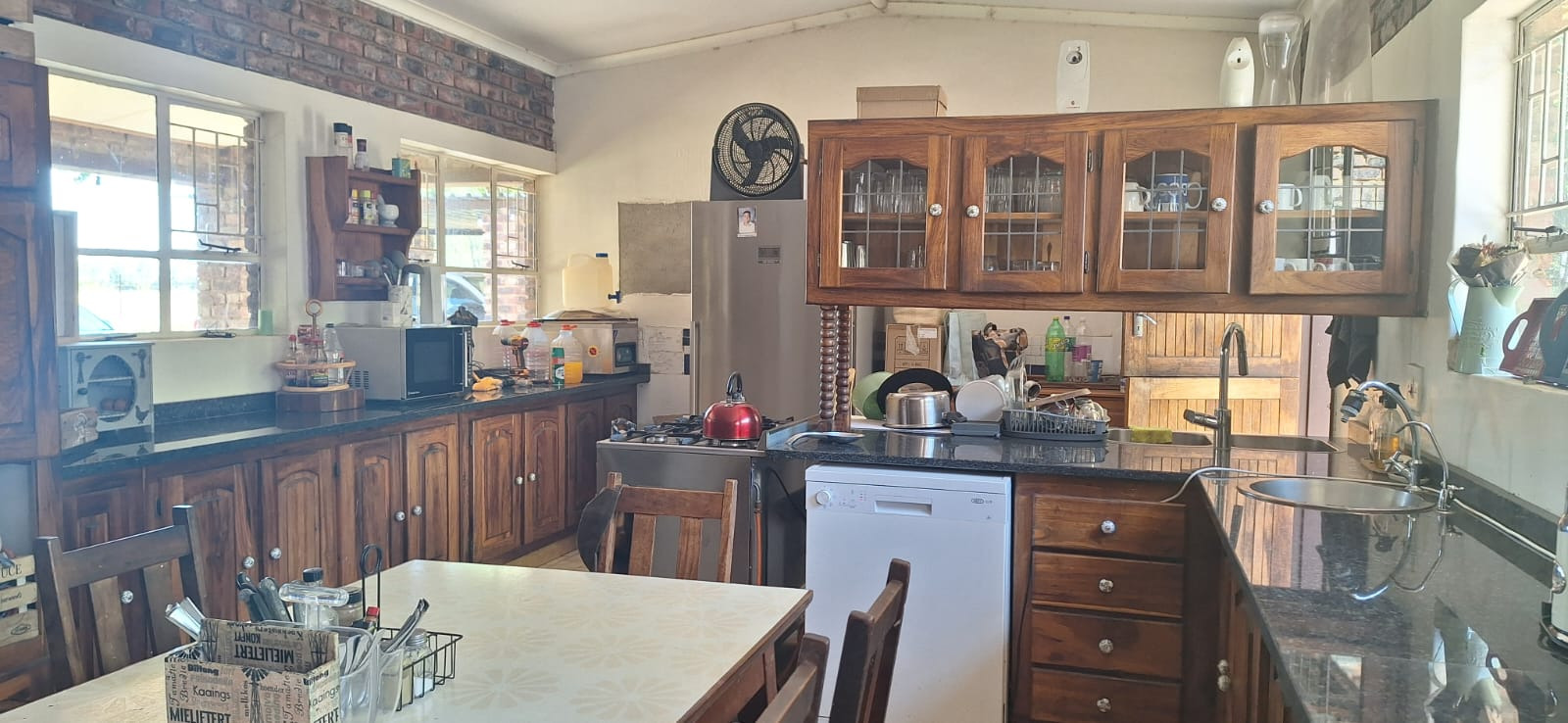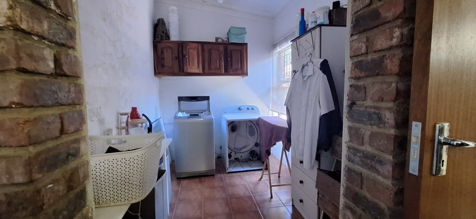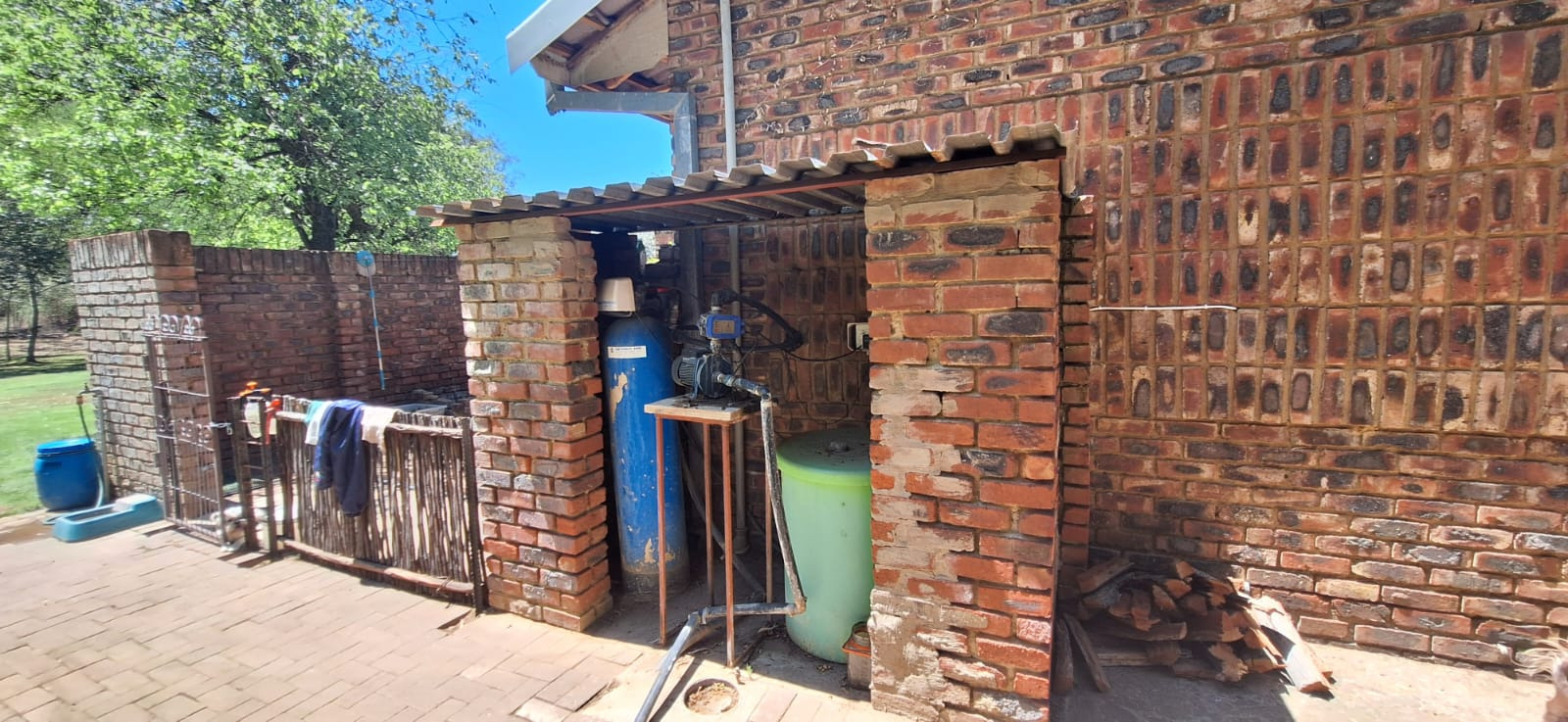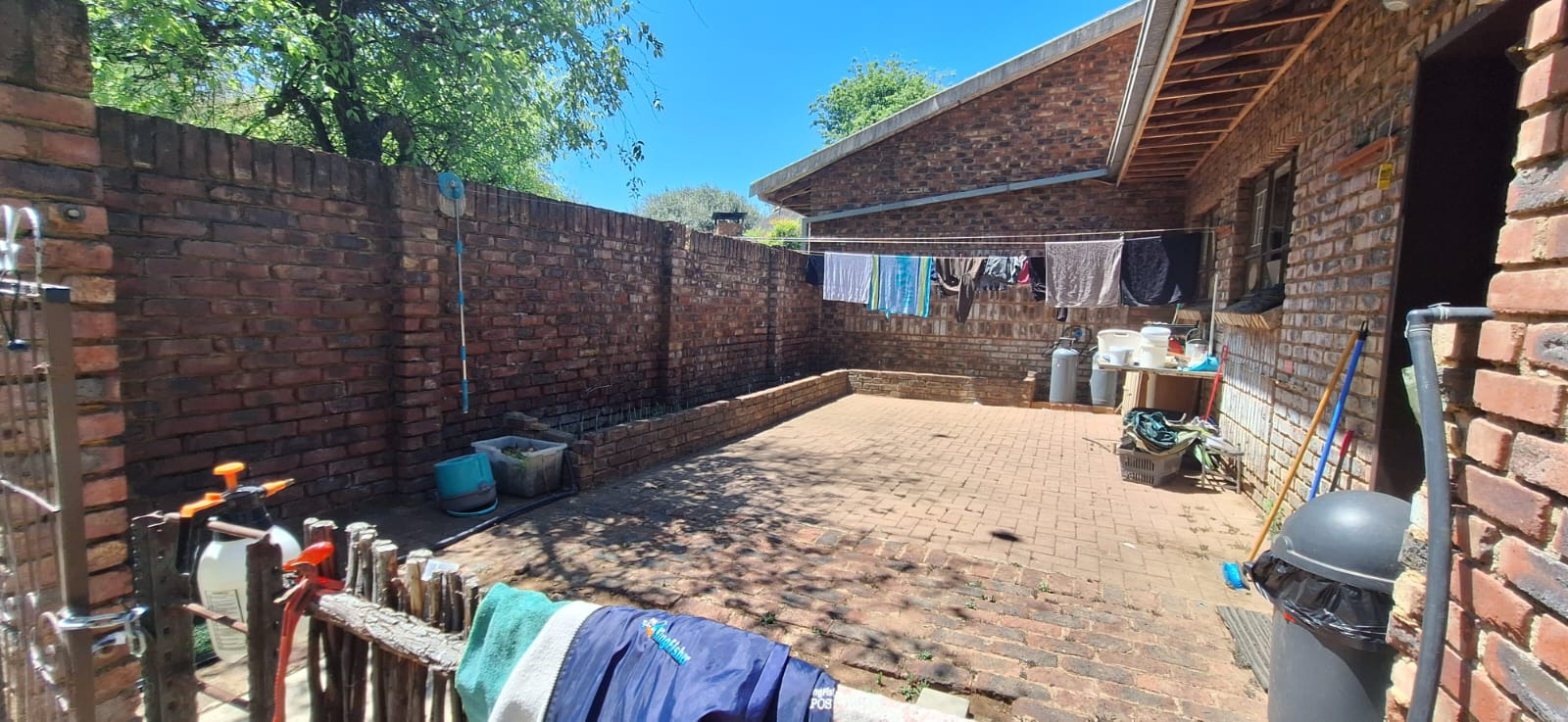 e. Kitchen with adjacent outside, enclosed, and paved washing line area;