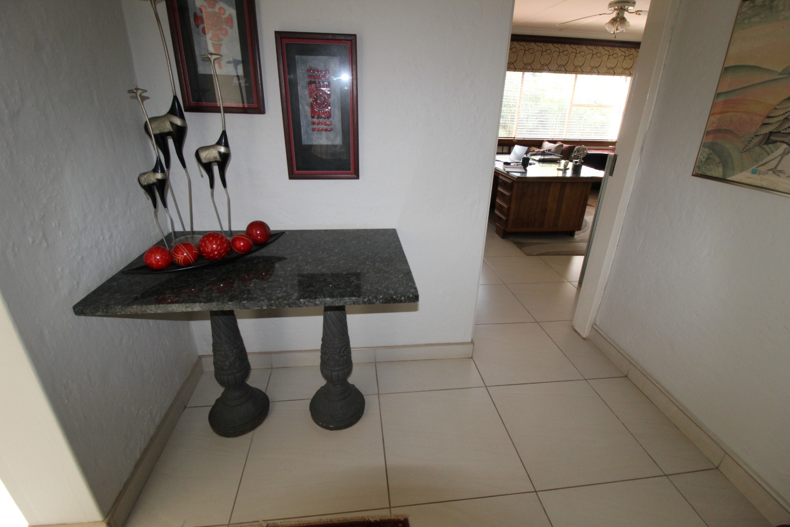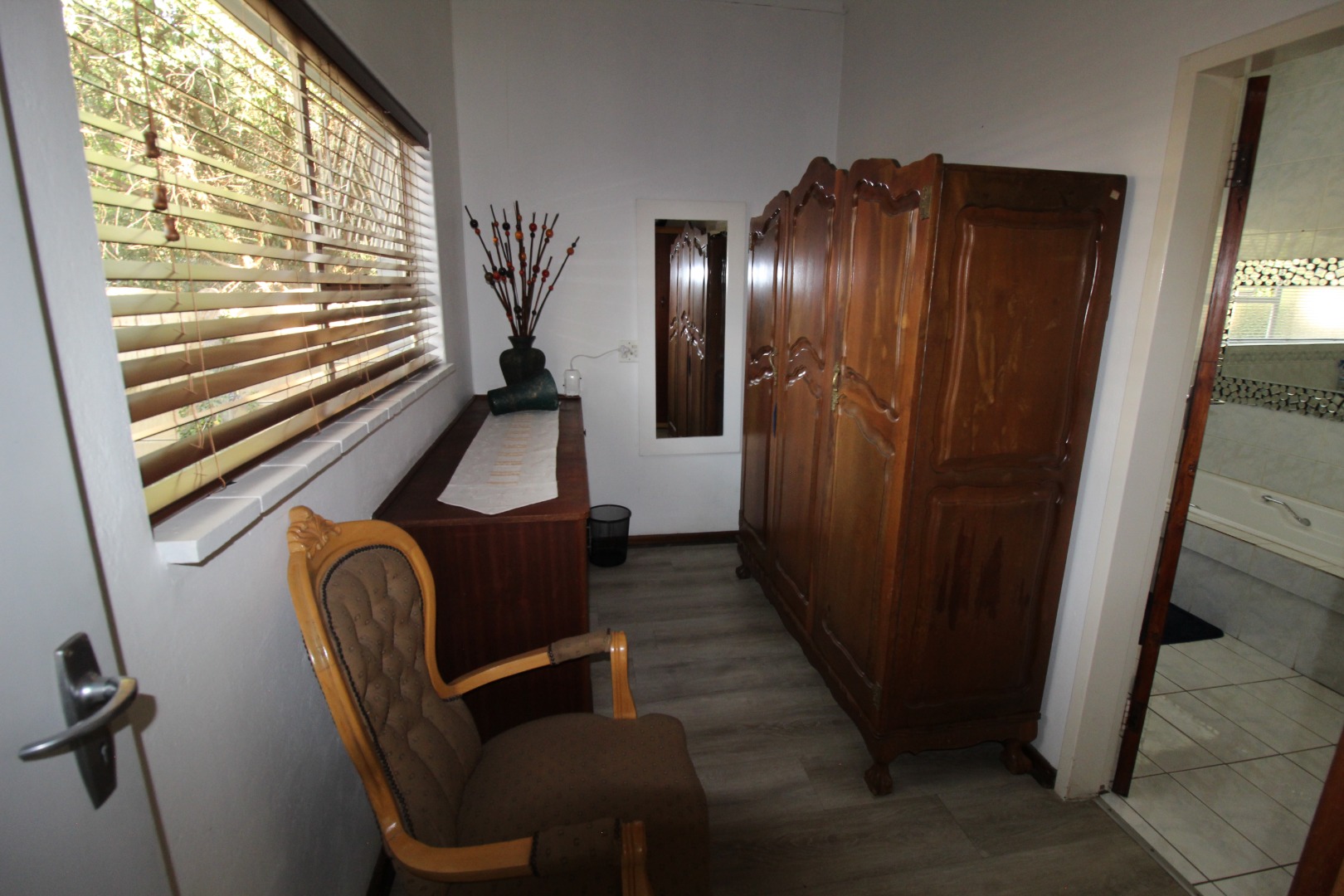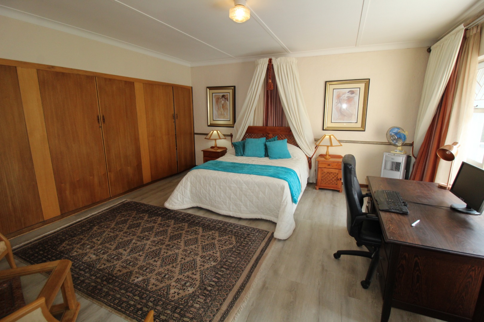 Entertaining is made effortless with a covered patio that leads to a sizeable entertainment space, enhanced by a built-in braai. Overlooking this area is a sparkling swimming pool, set within a beautifully maintained garden, supported by a borehole and irrigation system for year-round convenience.