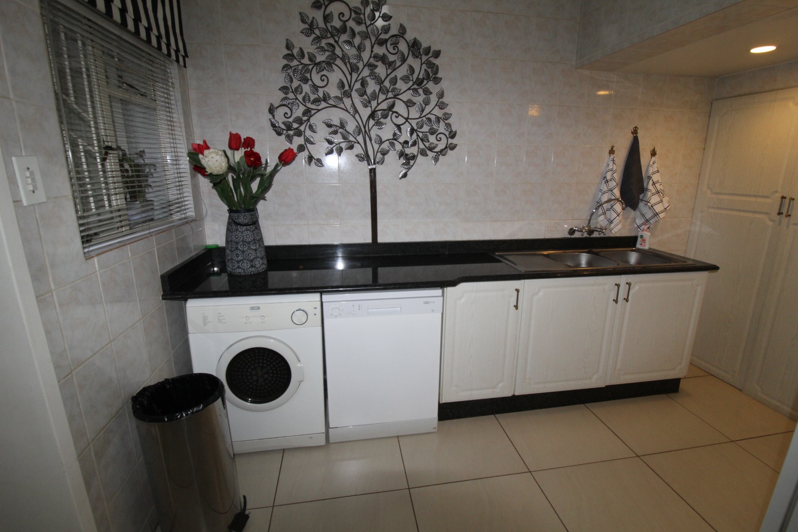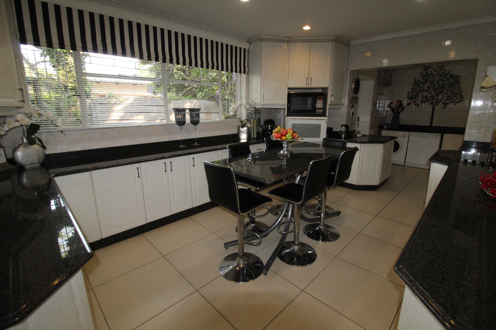 This extraordinary home features five generously sized bedrooms (In total) and three bathrooms, including a luxurious en-suite. The main bedroom has a dressing room as well. The expansive open-plan living and dining area flow seamlessly together, while the truly beautiful kitchen is a true highlight, complete with granite countertops, a separate scullery, laundry room/ pantry as well.